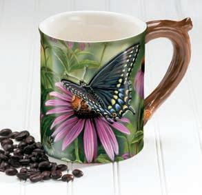A hot beverage and a beautiful moment with nature, what a way to start the day! Unique sculpted handles with all-around relief Terry Redlin images make these mugs a sure winner on everyone’s gift list. Generously sized at 16oz. Dishwasher and microwave safe. 4¼"H. ©Terry Redlin. Produced by Wild Wings® a division of Art Brand Studios, LLC.