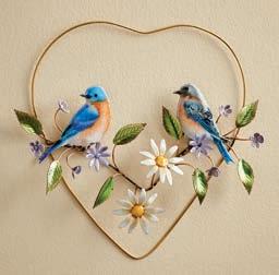 Commemorate the beauty and serenity of love with a heart wreath depicting a pair of cardinals or bluebirds resting on a flowered branch. Entirely hand-crafted of glass fi red onto copper for permanent, brilliant color; each a one-of-a-kind piece of art. 8"H x 9"L x 2"D