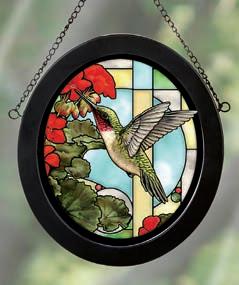Let the light shine! This stained glass art shows its true colors when backlit with natural sunlight. The beautiful design is printed with fade resistant inks on glass. Ready to hang with provided chain. 9"H x 8"W. ©Rosemary Millette. Produced by Wild Wings® a division of Art Brand Studios, LLC . Designed, printed and assembled in the USA. No. 106107 $39.95