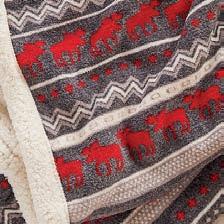 Snuggle into one of these super soft, cozy lodge throw blankets. Ultra soft fleece and Sherpa partner for a winning combination. Classic lodge motifs of bear or moose with pleasing patterned designs. 100% coral fleece polyester outer layer/Sherpa fleece inside. Machine wash. Imported. 50" x 60". Specify design. $54.95 each NEW Moose No. 148488 Bear No. 139864