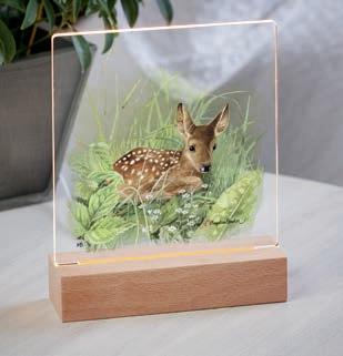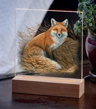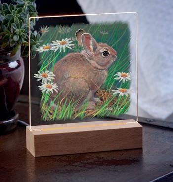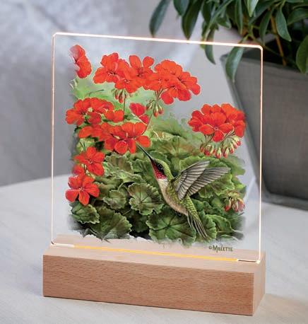 A soft ambient light with a favorite image leaves a sense of calm amid the darkness of night and beauty by daylight. Wood base with acrylic panel is illuminated by a 3 watt warm LED light. USB plug-in with button switch. USB adaptor and microfiber cleaning cloth also included. Components UL listed. 7¼"H x 6"W x 1¾"D. ©Rosemary Millette. Published by Wild Wings® a division of Art Brand Studios, LLC. Designed, printed, and assembled in the USA. No. 131010 $31.95