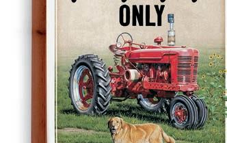 “Reserved Parking for Big Boy Toys Only”. The beautiful imagery of this tin sign is printed on die cut metal then framed with wood to create an old fashioned vintage shape. Features Uncle Virgil’s Tractor artwork by Neal Anderson. Hanging hardware included. Display indoors or a sheltered outdoor area. 18½"H x 12¼"W x ¾"D. ©Neal Anderson. Produced by Wild Wings® a division of Art Brand Studios, LLC. Printed in the USA. No. 135228 $49.95