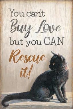 Rescue–Cat featuring “Gardener’s Helper” artwork ©Susan Bourdet; sign reads: “You can’t buy love but you can rescue it!” No. 136687