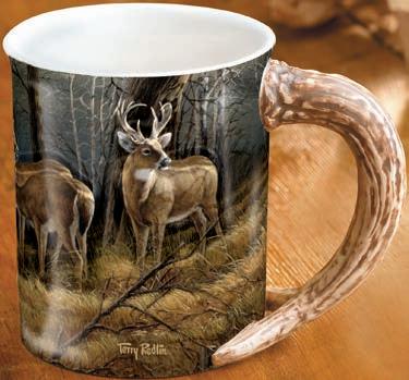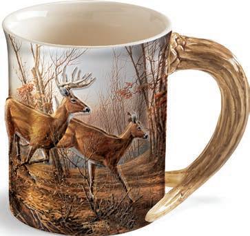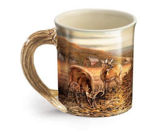 Images on mugs are raised for dimensional effect!Sharing the Bounty with Antler Handle Autumn Run with Antler Handle No. 106134 F