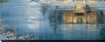 Enjoy the moment, relishing the quiet beauty every time you glance at this peaceful image. Wrapped canvas art and a functional clock in one. Decorative hands complement the image. Precision quartz movement. AA battery required (not included). 18"H x 13"W x 1¼"D. ©Janene Grende. Produced by Wild Wings® a division of Art Brand Studios, LLC. No. 137021 $39.95