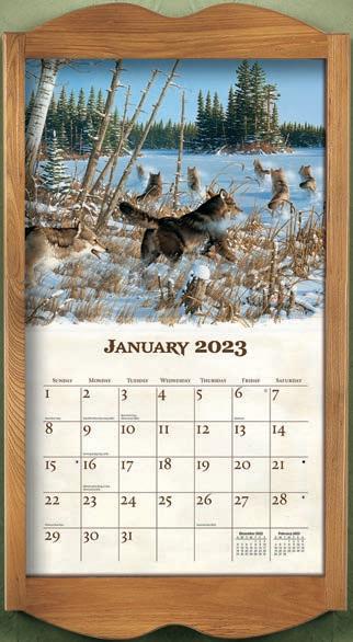 Flip the page each month and treat yourself to a gift of fi ne artwork from some of today’s most talented artists. Great gifts for family and friends. Presented on heavy weight paper stock. Opened size, 24"H x 133⁄8"W unless noted. Specify calendar.
