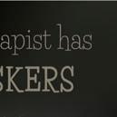 Therapist–Dog featuring “Lewie” artwork ©Ron Schmidt; sign reads: “My therapist has whiskers” No. 121040