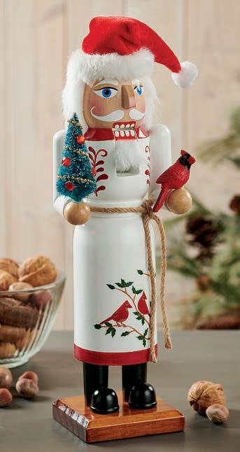 From his suit to his sleigh, we all know that Santa’s favorite color is red. That’s why he loves cardinals. The brilliant red against a wintry backdrop is a welcome and joyous sight. Santa wears a decorated suit, holding a cardinal in one hand and a small Christmas tree in the other. Decorative purposes only. 13¾" H x 4"W x 4"D. No. 138275 $49.95
