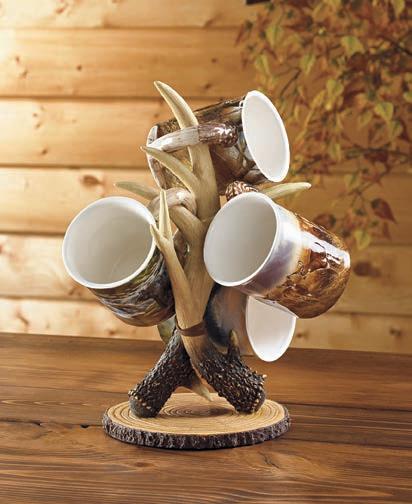 Immediately at home on your counter or table, this realistic faux antler accessory is handcast and hand-painted. Holds up to four of your favorite mugs. 13½"H x 7½"W. Produced by Wild