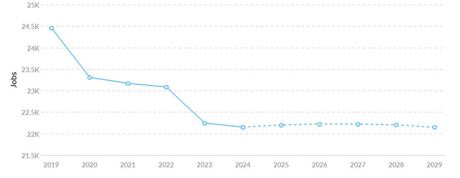 Jobs decreased by 2,309 over the last 5 years and are projected to decrease by 4 over the next 5 years.