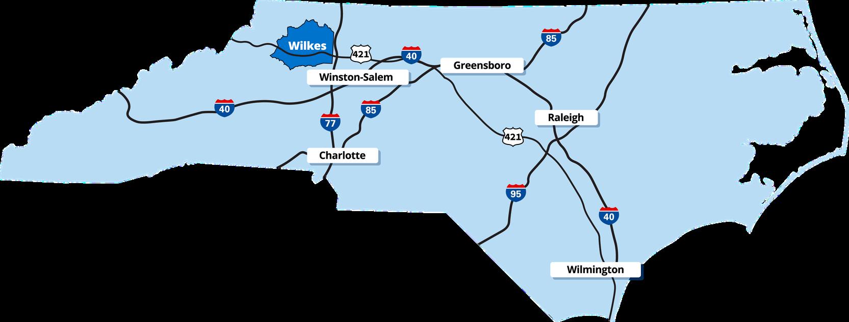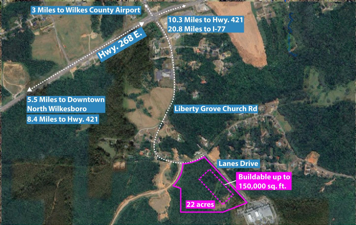 Lanes Drive is a 22-acre pad-ready industrial site located within an industrial park in Wilkes County, North Carolina. The property can accommodate a building of up to 150,000 square feet, offering flexibility for a range of industrial users.