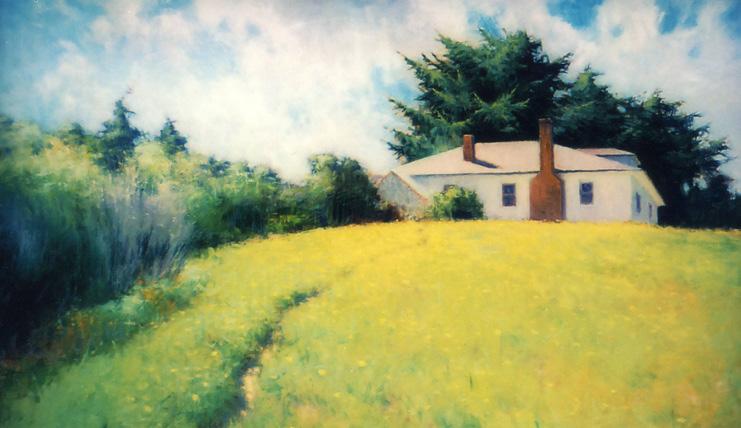 Framed in a custom carved gold wood museum frame. This is a large work done en plein air by Gibbons along the Yaquina Bay estuaries while painting on a bright sunny day. The artist’s favorite haunts of wild landscape along the bay were often “peopled” with buildings, and he painted them anyway. House on the Hill shows a clear pathway up to the house and draws one into the work (another aspect of many of his paintings). $30,000. More information- Gallery Michael Gibbons 541 336 2797.
