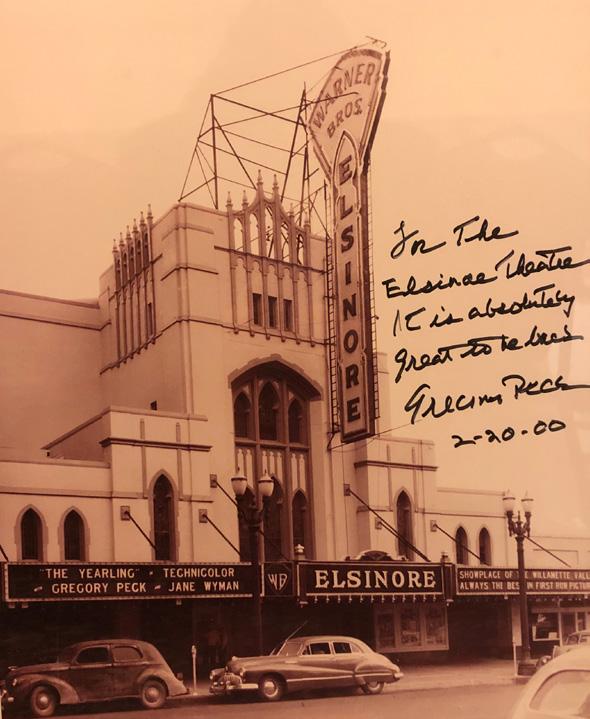 In February 2000, Gregory Peck presented his final career performance on the Elsinore Theatre stage. He said, “I just wanted to say you have to do great things with a theater like this. I am so impressed . . . It’s quite possibly the outstanding venue on our tour. I am most enthusiastic about the possibilities of this theatre and I hope you will lend your strongest support. . .”