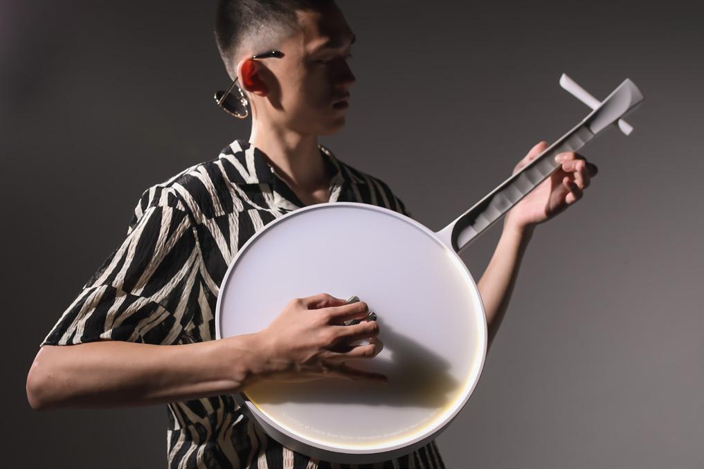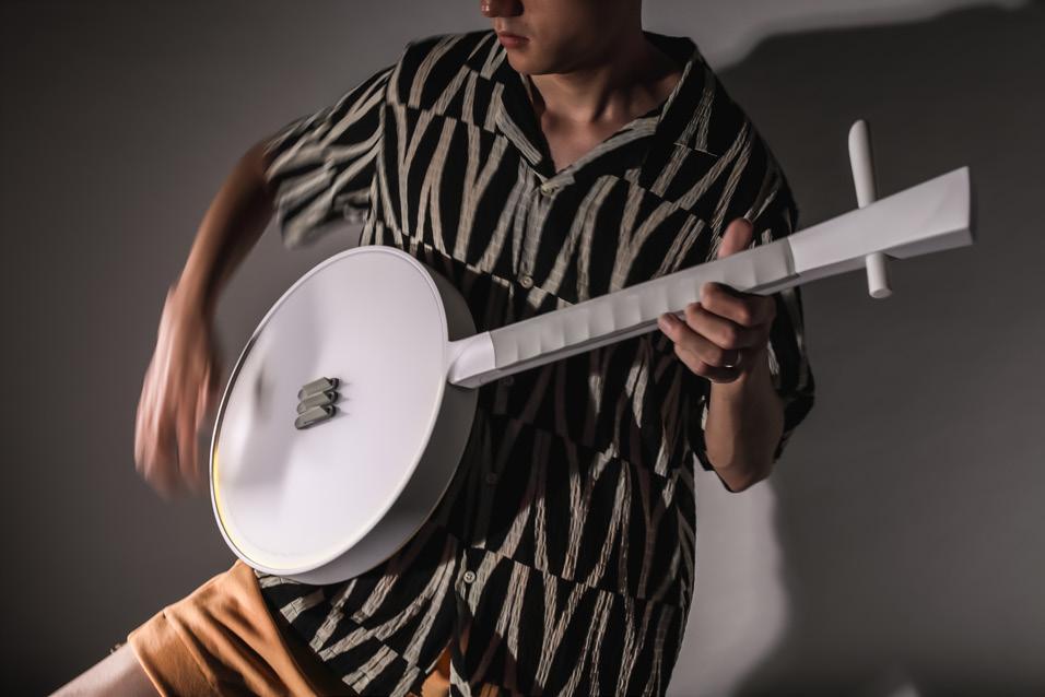 新世代月琴,Crescenter透過電子化使傳統文化擁有 全新的互動型態,將弦取代為壓力感測回饋,也使其 能轉換東西方音律,透過滑動琴身邊緣,燈光也將隨 之亮起,讓表演者和觀眾都能和月琴互動。