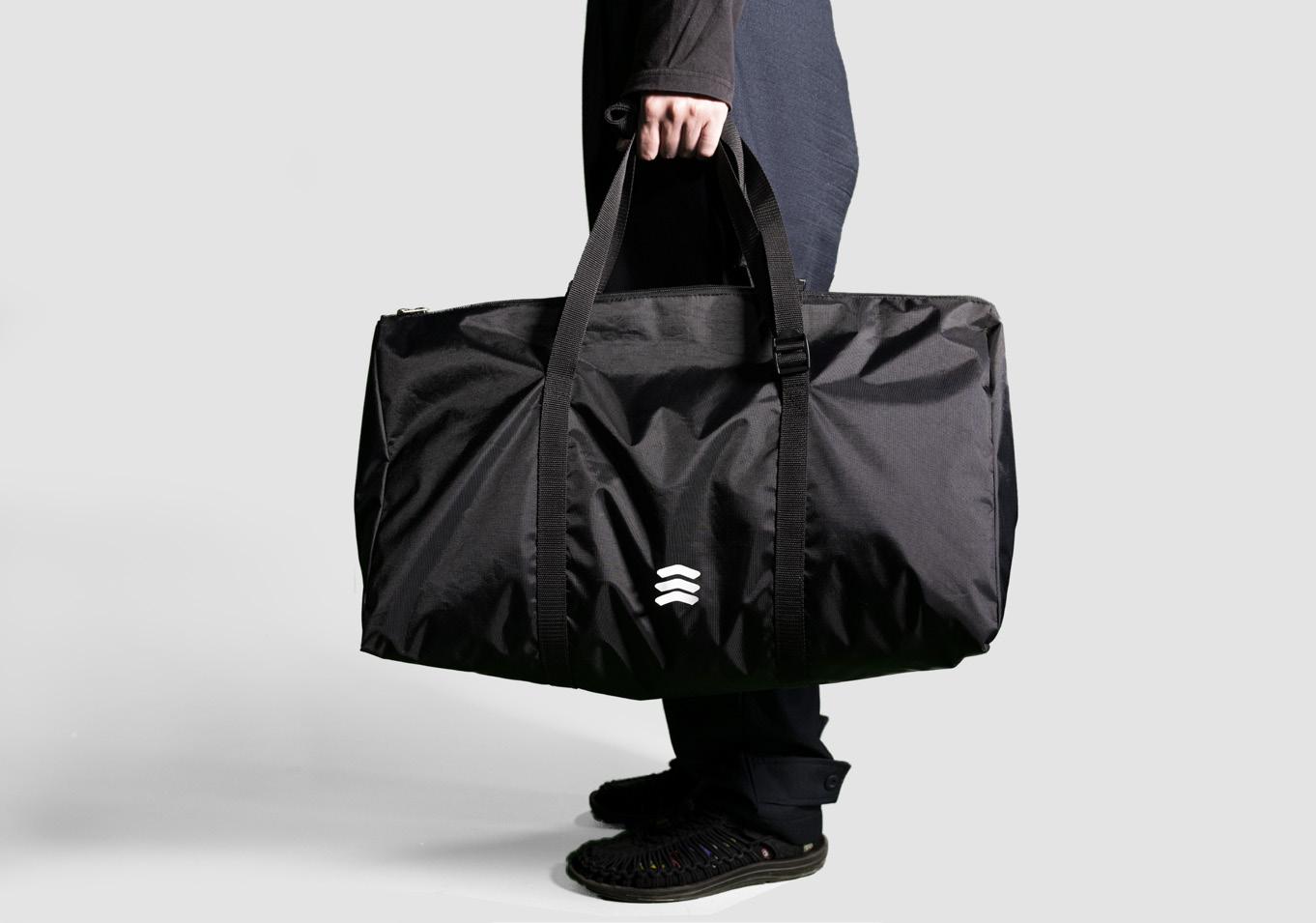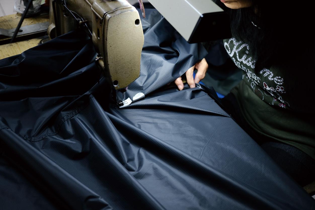 我們與帳篷製造商合作,利用防曬、防水係數高的布料來製作,選用輕量化且薄的布料讓整 體重量只有2kg。