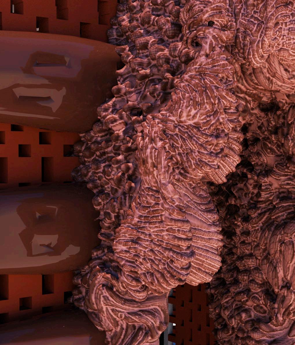 The Chameleon seeks to develop an architectural form and language using generative and sculptural toolsets as an ornamental intervention. The project is surrounded by the local Victorian archetypes within the urban context of Carlton, where it is taking inspiration of the existing ornaments from the design of Victorian Houses at Rathdowne Street, showcasing swirly and fibrous architectural qualities. The contrasting transitions between the exterior and interior results a series of enclosed chambers with fiberous appendages acting as an architectural ornament growing around the enclosed rooms and gallery spaces, creating a simple to thick and dense transition of the architecture. TYPOLOGY: