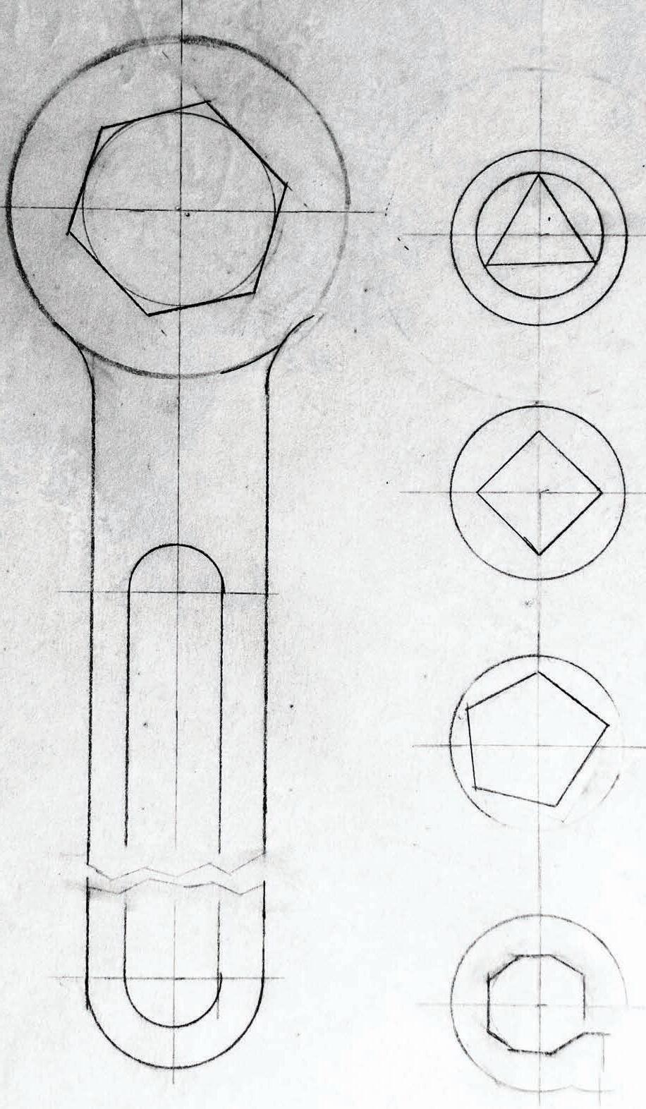Drawn objects to scale using a Mayline, triangles, and mechanical pencils