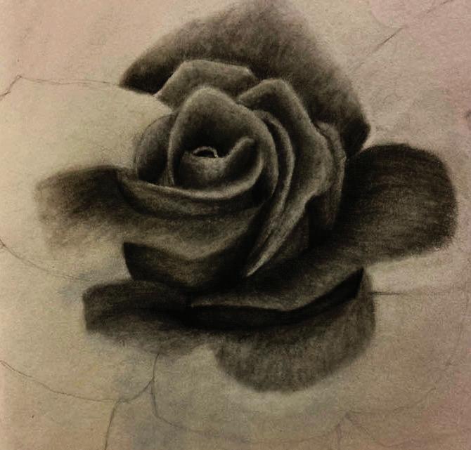 Sketching became a very prominent way to observe how the things around me are constructed. To draw something as simple looking as a rose started to take on the study of how the softness could be implied by different blending techniques of graphite, and later charcoal.