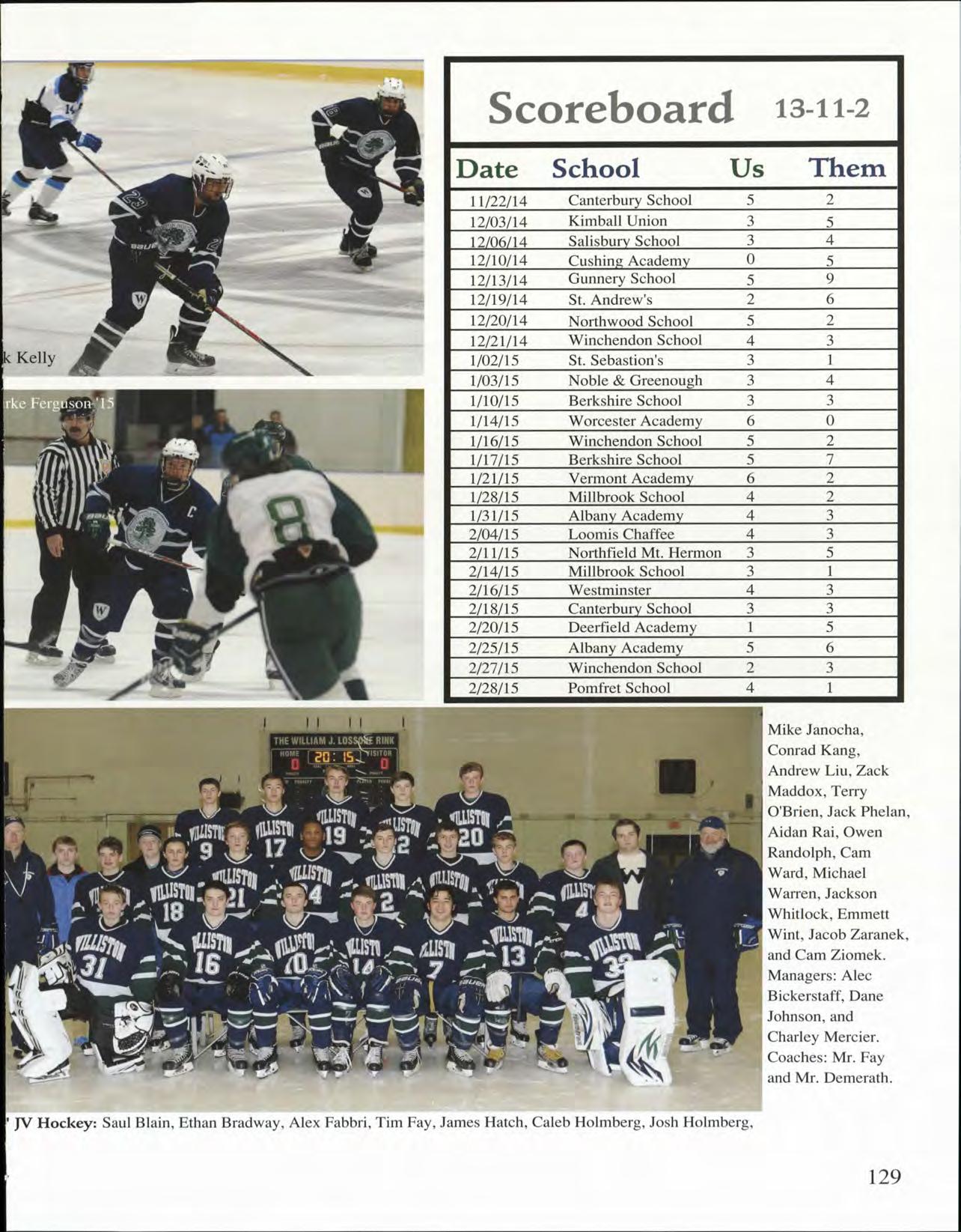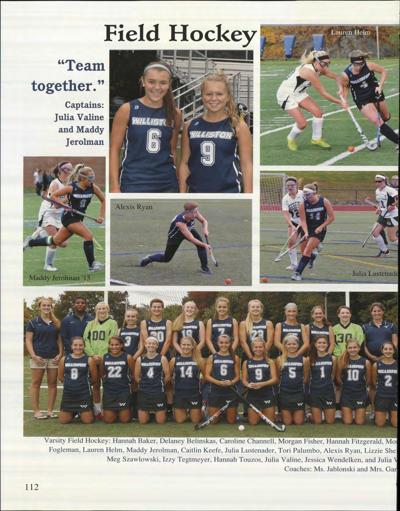 In an age when everything gets documented by "selfies" or other forms of social media, you have many parting shots for Williston's record books. The football team's epic bowl game,falling one point short in a true-grit Williston come from behind effort; girls' varsity hockey team's incredible run while skating a dozen players; All My Sons, and As You Like It; varsity girls' and boys' basketball; the Caterwaulers and Widdigers singing with big numbers; and memorable speakers gracing our new space in Steven's Chapel.