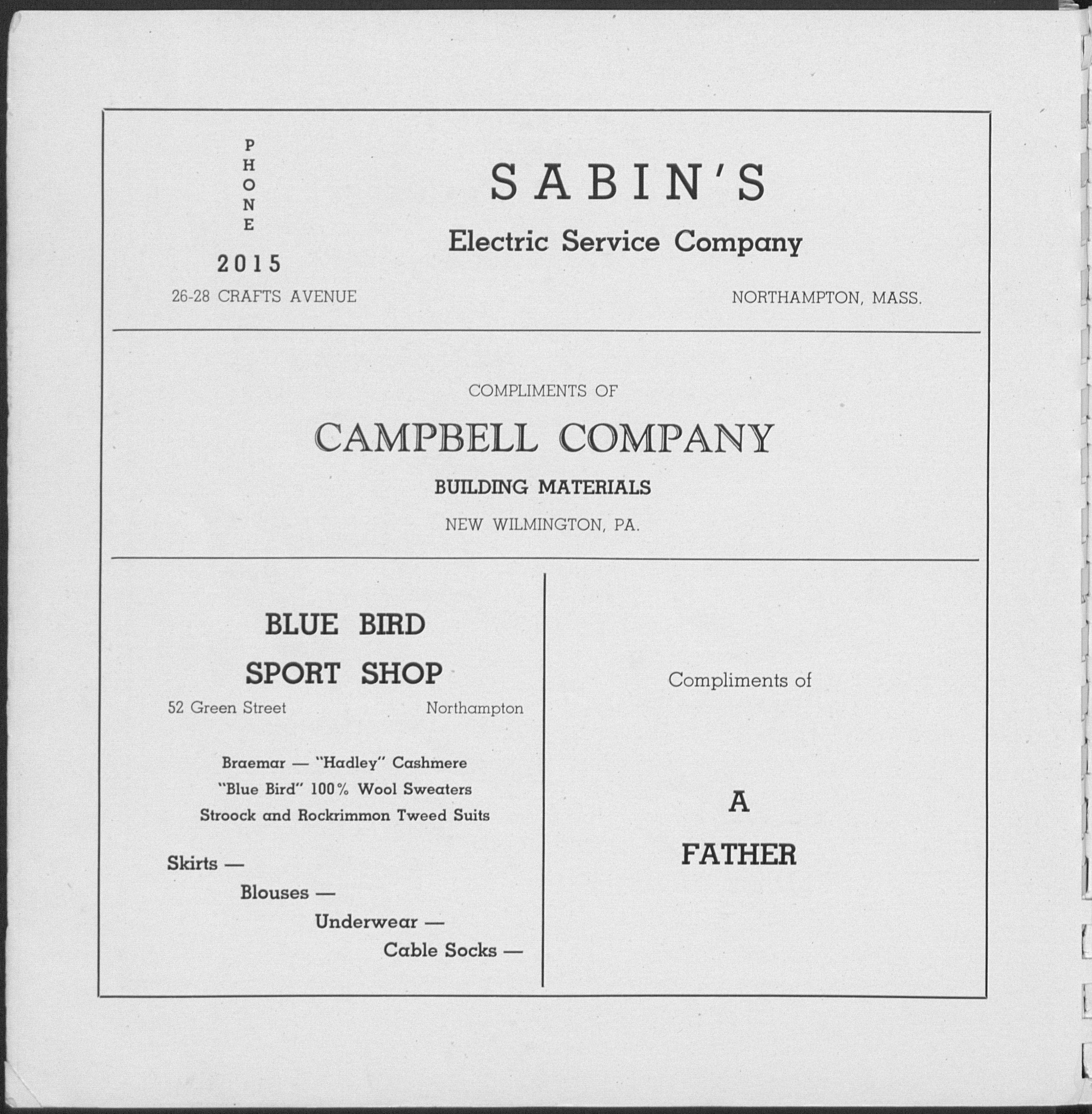 Phone 2390 Northampton, Mass.