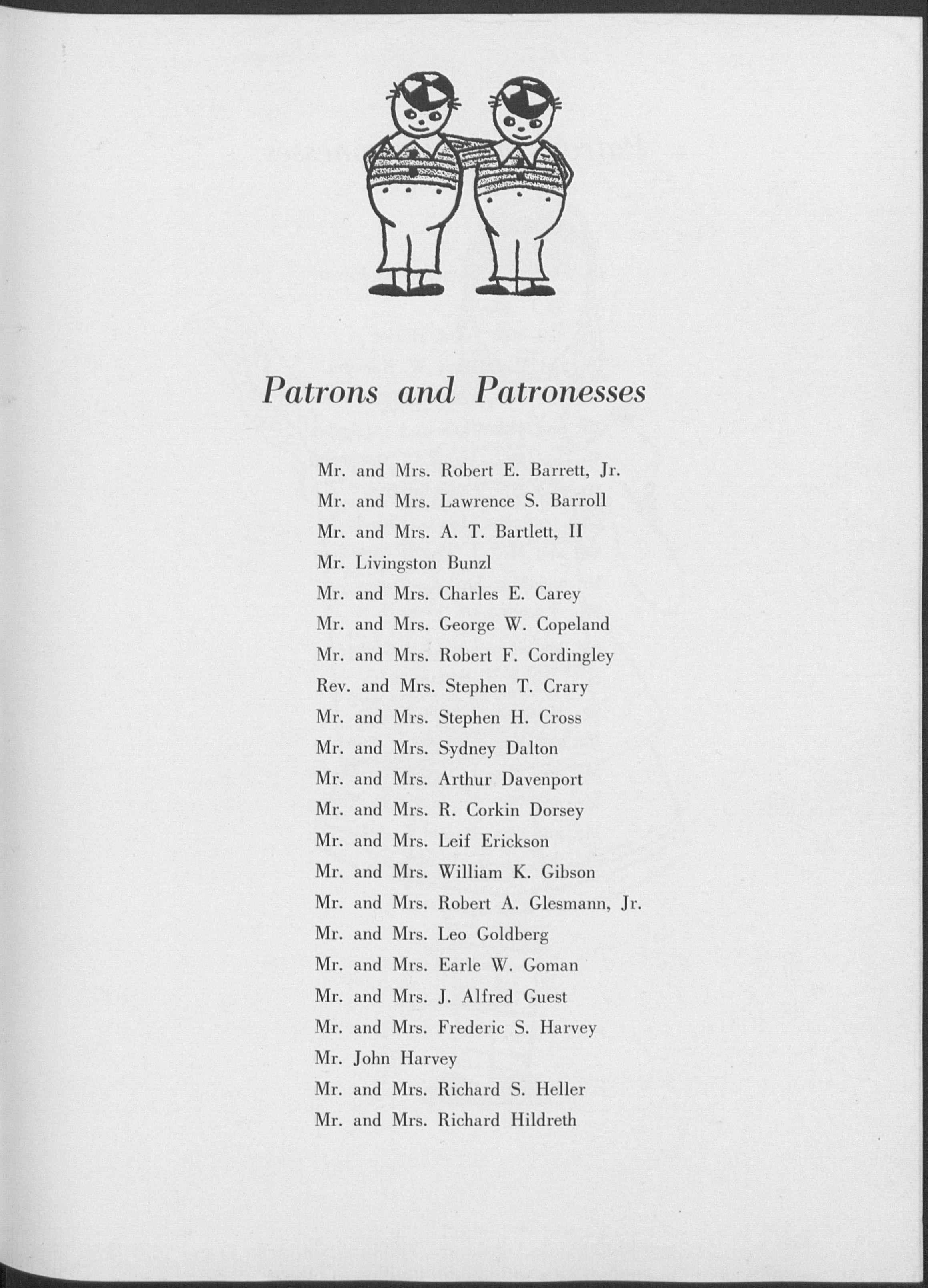 DeBarbieri, Mary Dempse, Janet Donais, Harriet Dragon, Mary Lou Dreikorn, Nancy Lurand, Patricia Ewing, Margaret Felsen, Jill Finn, Barbara Garis, Leslie Giamatti, Elria