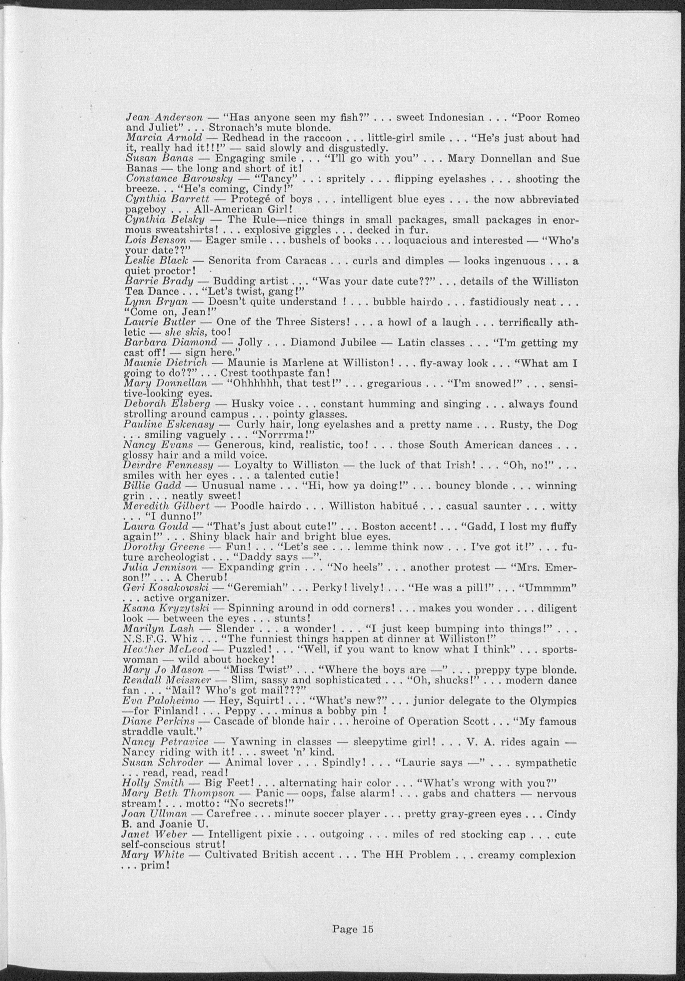 Deirdre Fennessy — Loyalty to Williston — the luck of that Irish! ... "Oh, no!" . . . smiles with her eyes a talented cutie!