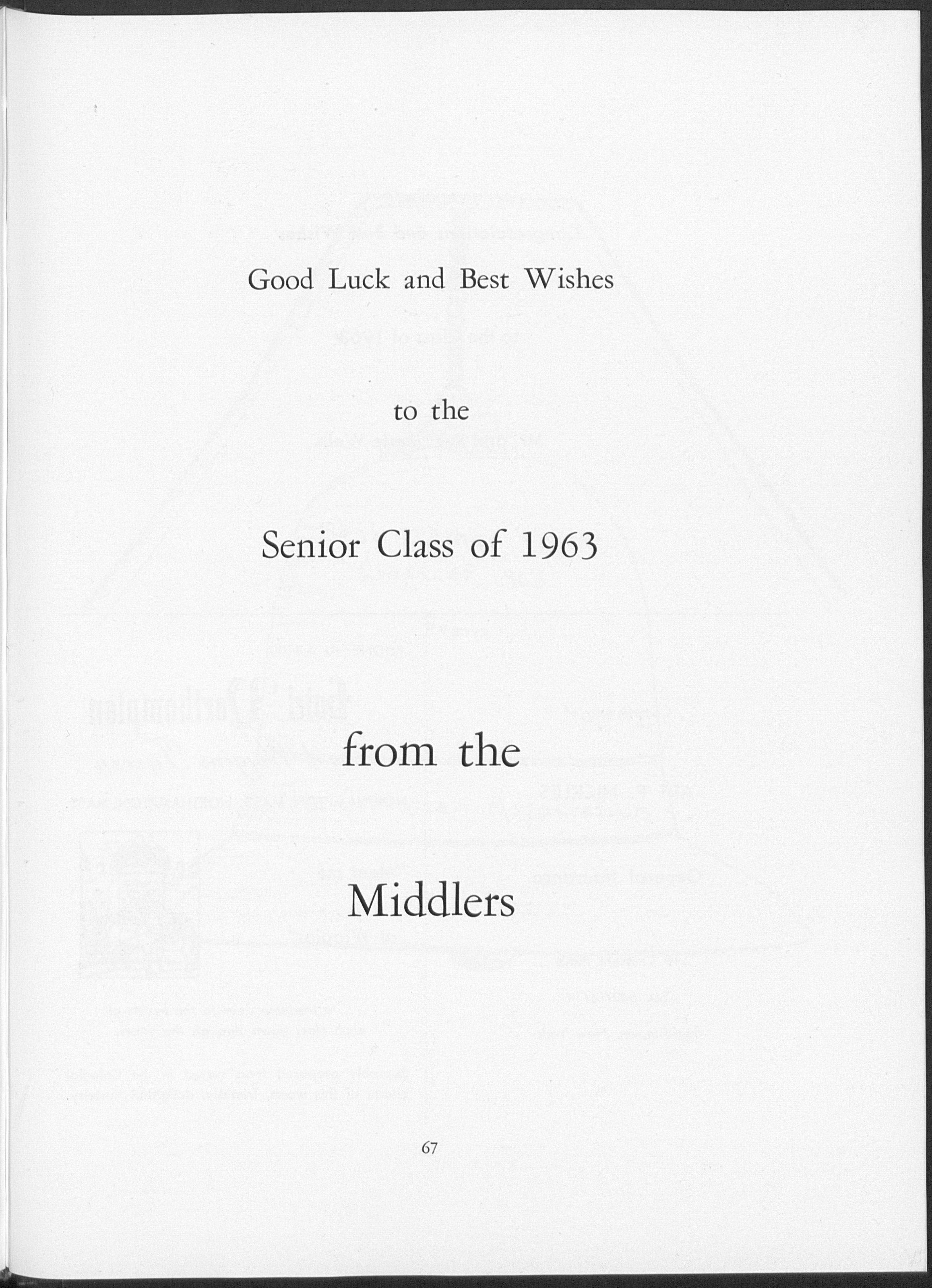 We shall all miss the Class of 1963 at Northampton. Our thoughts will go with you during the coming years, and there will always be a warm welcome awaiting you here.
