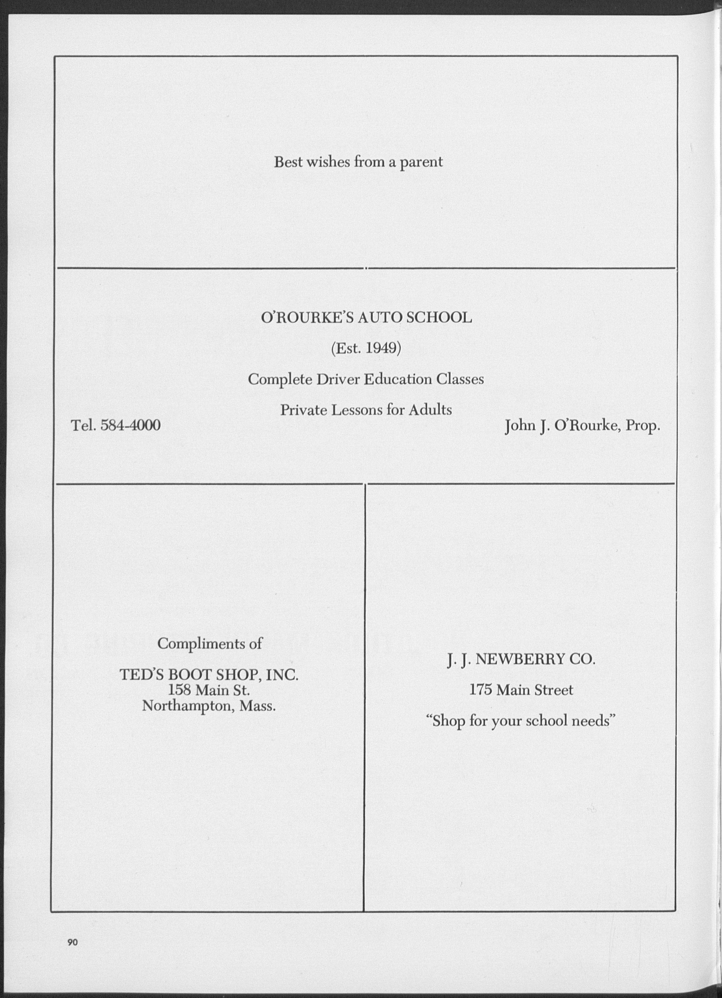 The year of 1967 through 1968 at Northampton School for Girls is just as exciting, if not more so, than the "good old days." We have a great variety of courses ranging from calculus to advanced placement English to ancient history. Classes last from 8:15 in the morning to 2:15 in the afternoon, with forty-five minutes off for lunch at the school. The academic day is followed by a conference period when girls can confer with their teachers and by activity periods in which girls can participate in clubs,study,go downtown or just sit and talk.