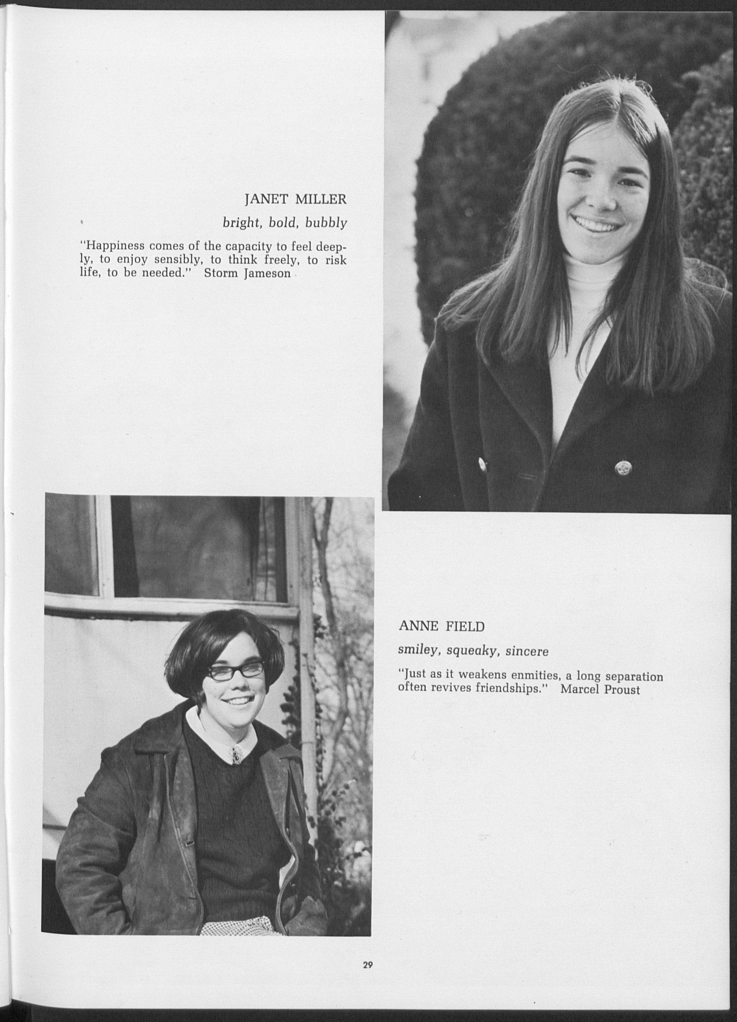 When you read this letter you will undoubtedly be a long way from the Northampton School for Girls and perhaps you will look back with some nostalgia at your last year at N.S.F.G. and the first year of that new headmaster. Now that new headmaster could not have made it had it not been for the seniors, experienced in the ways of girls schools, who took it upon themselves to help and advise the English teacher turned headmaster. Both Joyce and I are grateful to all of you.