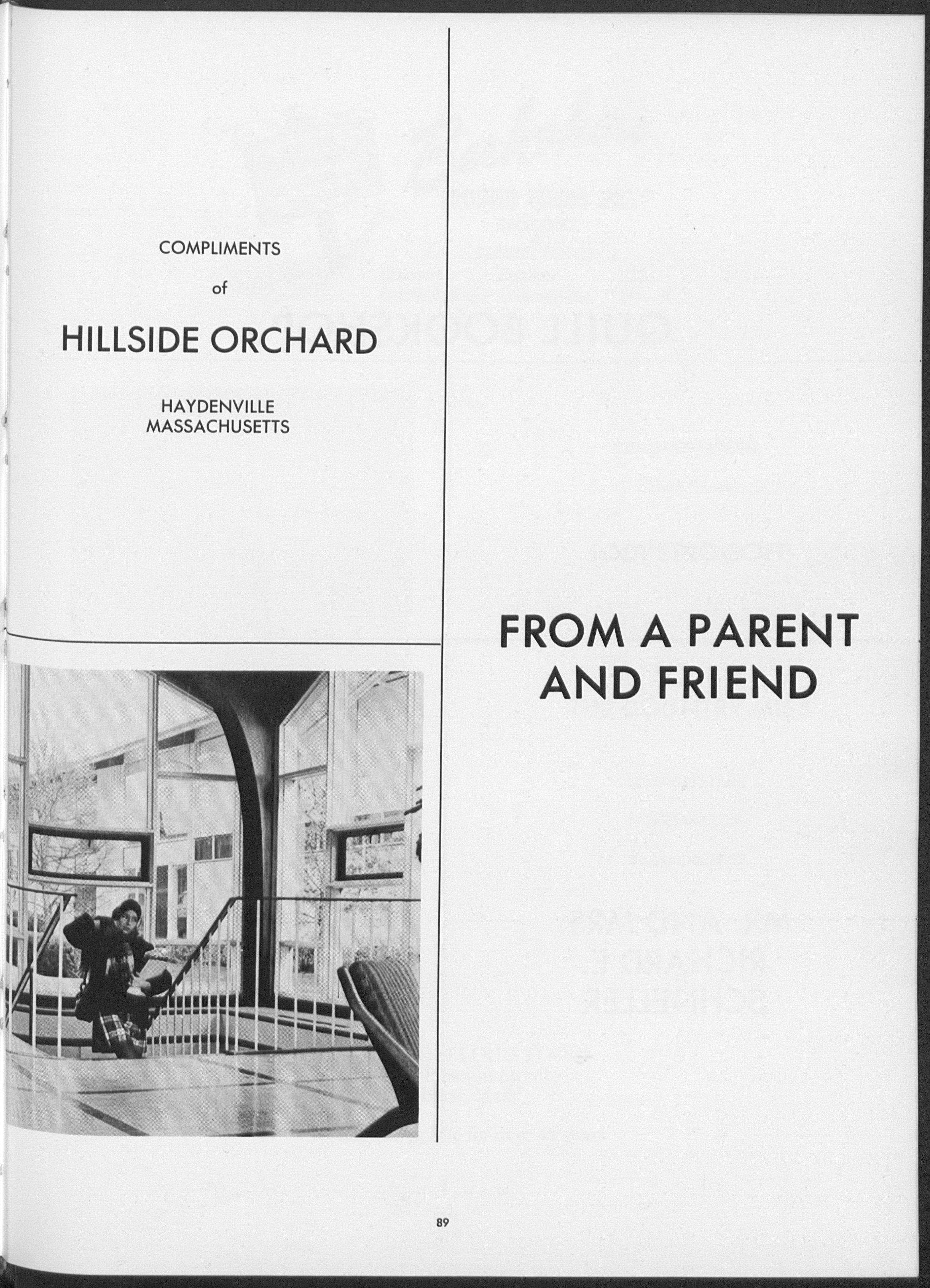 These changes you will not altogether miss; we shall keep in touch with you and I hope you feel that you would like to keep in touch with us. Be sure and come and visit when you can take the time, in the lush of spring or the brilliance of fall or even in the deepest doldrum of the Februaries. The latchstring is out, and for Joyce and me and our family, there will always be a special place for those who in their last year at N.S.F.G. made our first so pleasant and rewarding. Many thanks.