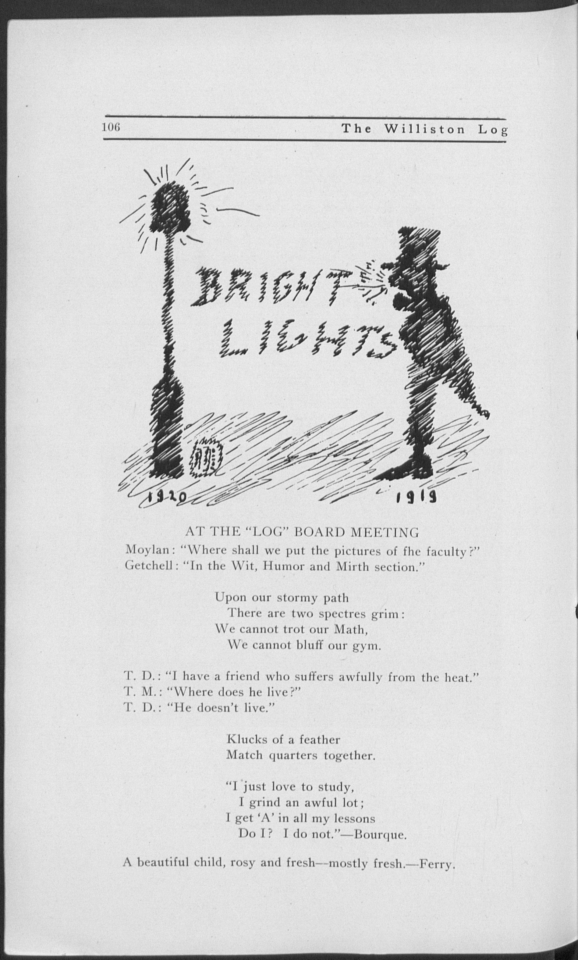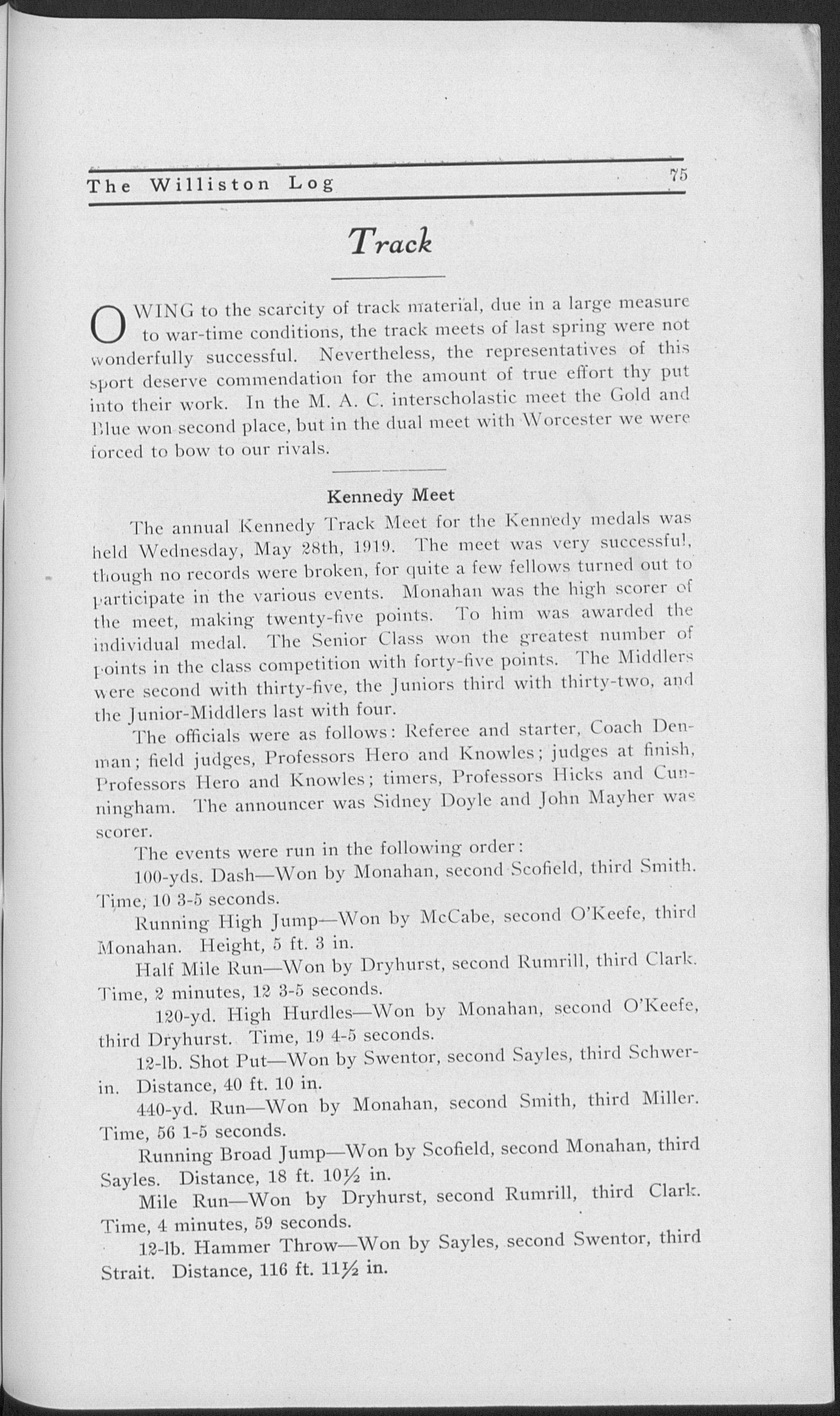 Montague studying History. "Bill" Sengstacken fastest runner in school. "One Lung" Reed making the Track team.
