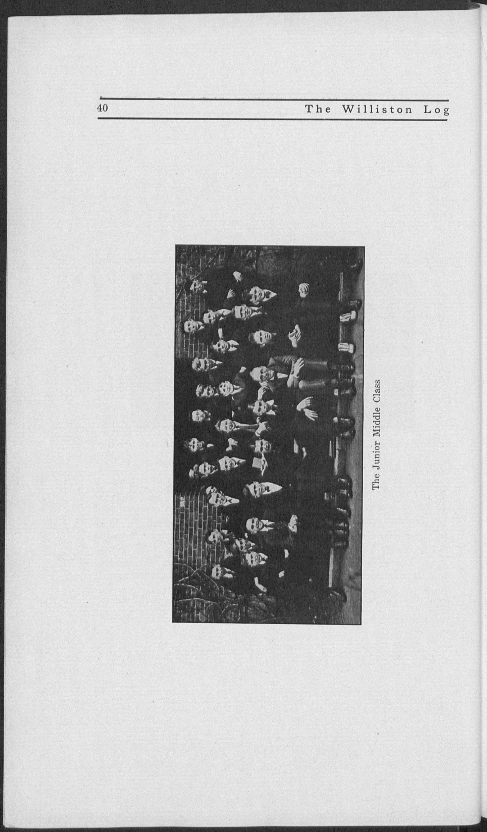 Four long years have we been together, and now that the time has come for us to say our "adieus" to Williston, we all realize that the time has been very much too short. The enjoyments Williston affords we have. enjoyed ; and through the mental training and uplift she gives we have Profited. The goal toward which we have striven is in sight, and Ihough we glory in our attainment, we sorrow because it means the everanee of our student relations with Williston.