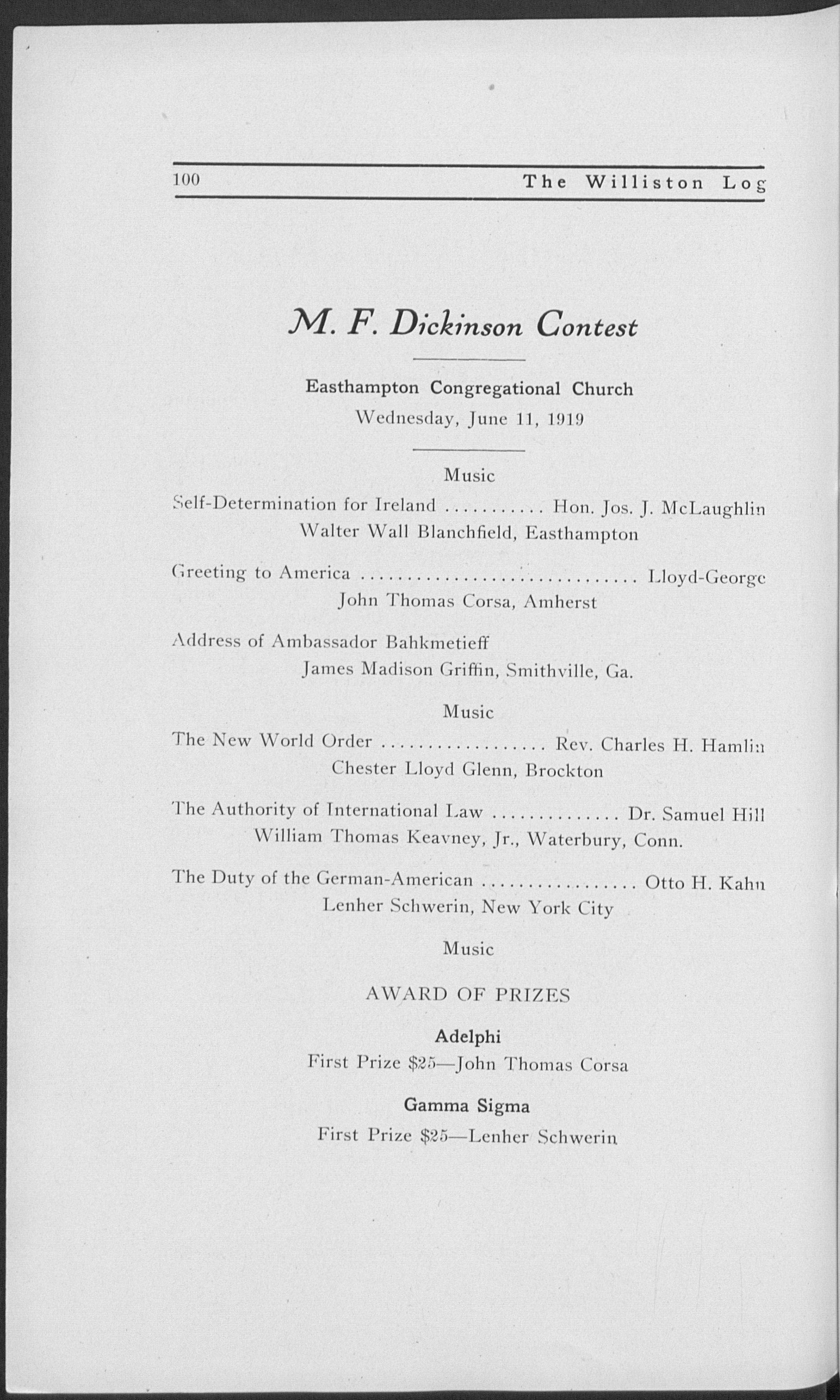 Entered third year classical; honor man; joint debate (4); Carew debate (4); president Gamma Sigma.