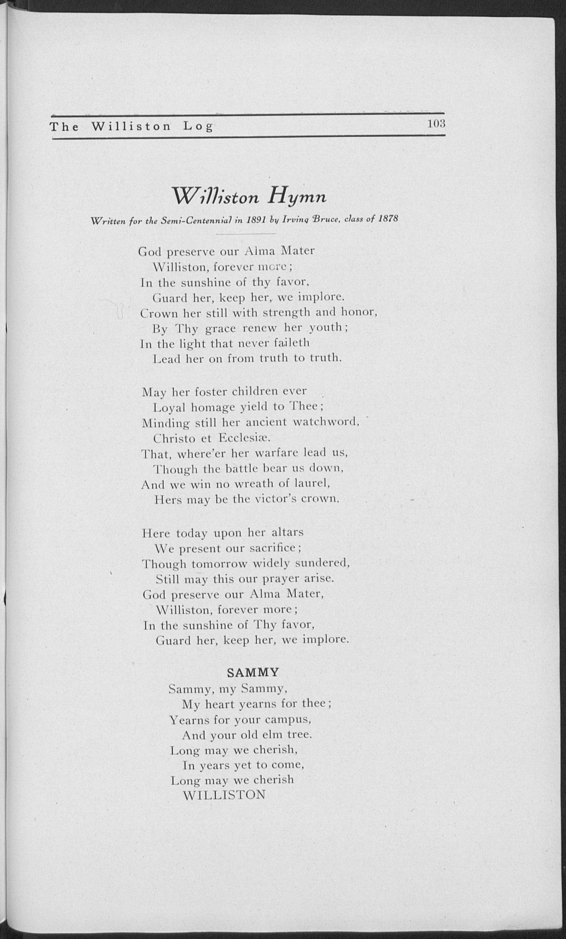Prepared for college at Salem High School. Amherst, 1875. Alpha Delta Phi fraternity and Phi Beta Kappa society. Siudied at the University of Berlin, 1894-95. Came to Williston in 1878. Acting principal in Dr. Sawyer's absence.
