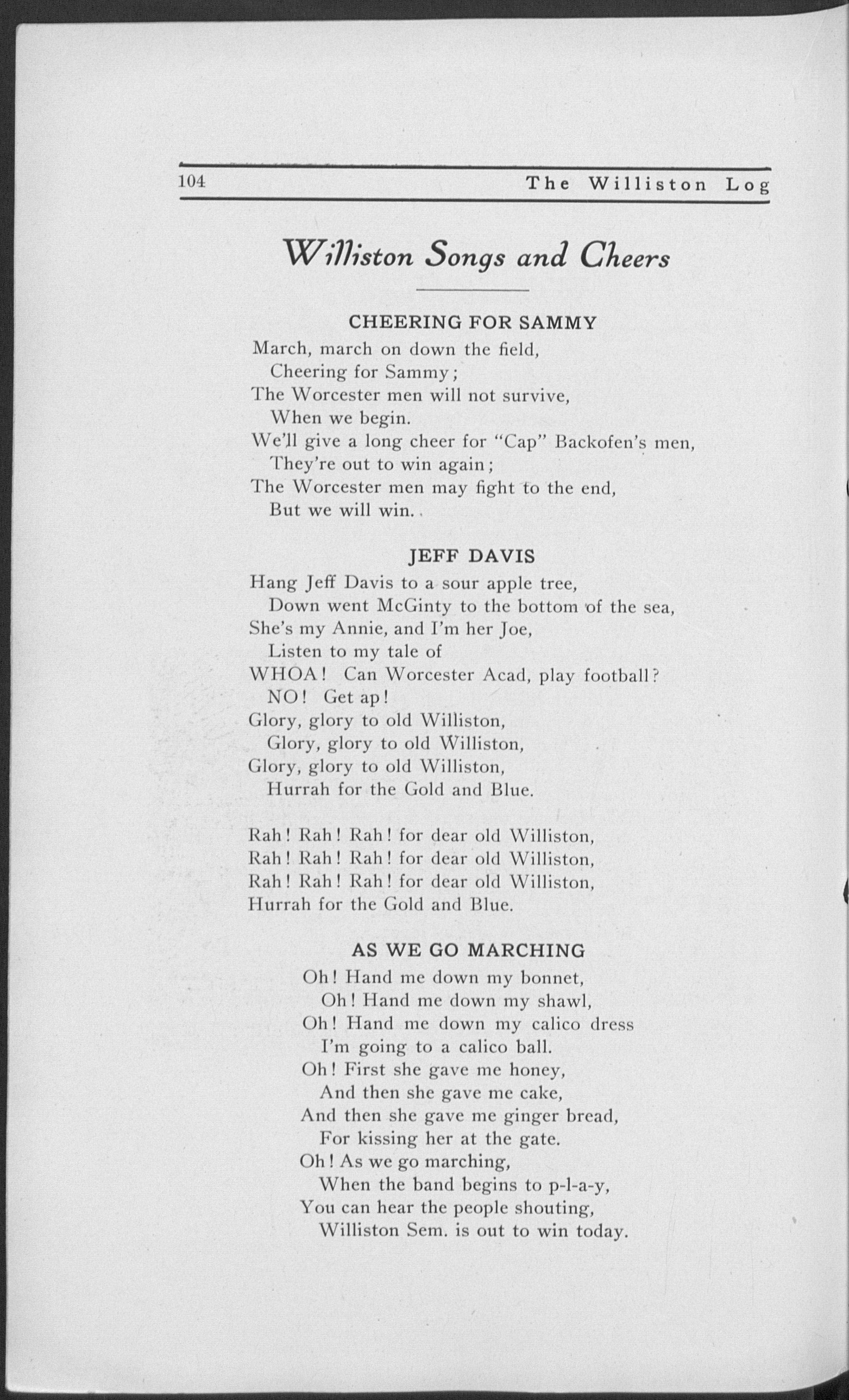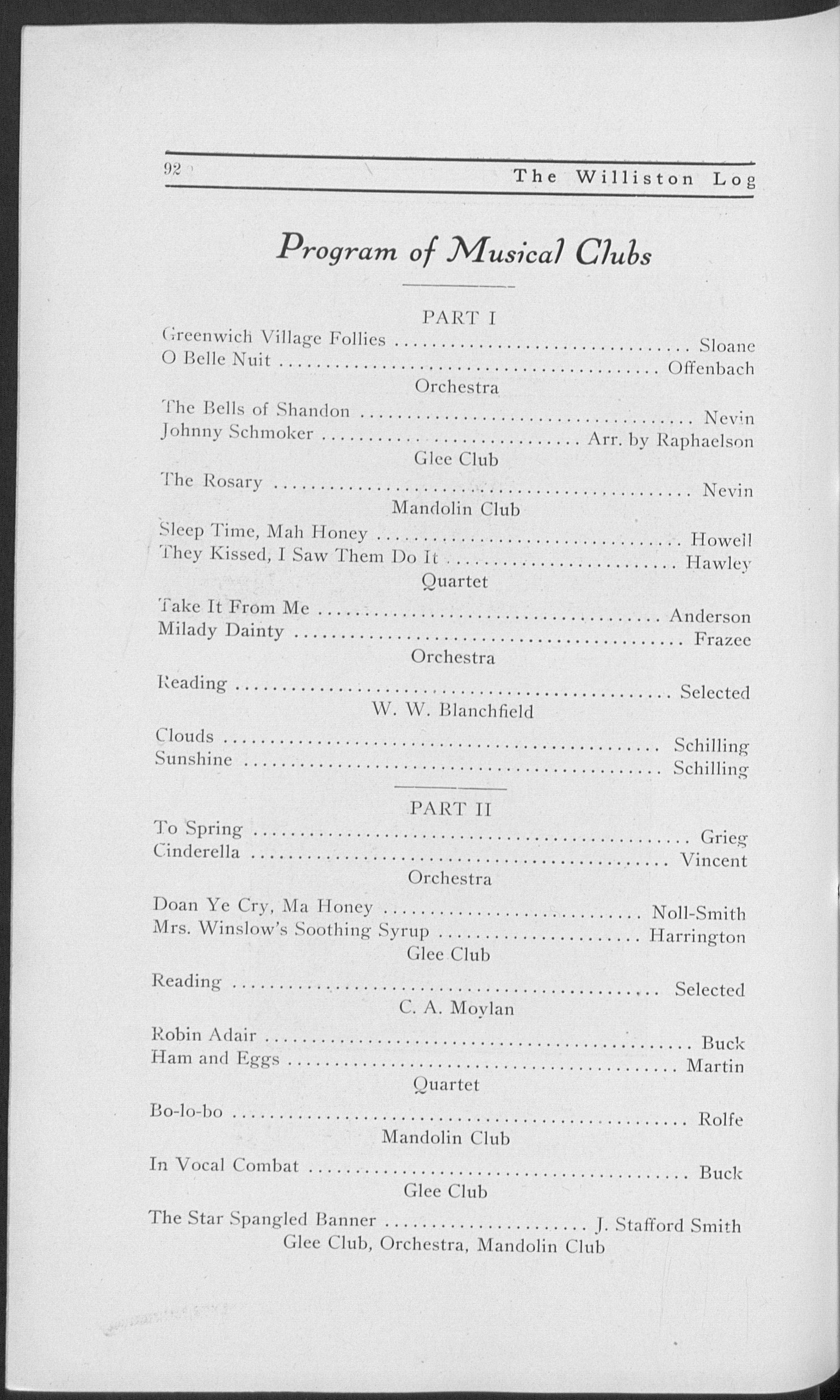 But in years to come, when we look back over our days spent at Williston, what we have accomplished, singly and together, and the friendships we have made will be to us the most dear. Chiefly do we regret the separation from our instructors, our associations with them having ever been most pleasant.