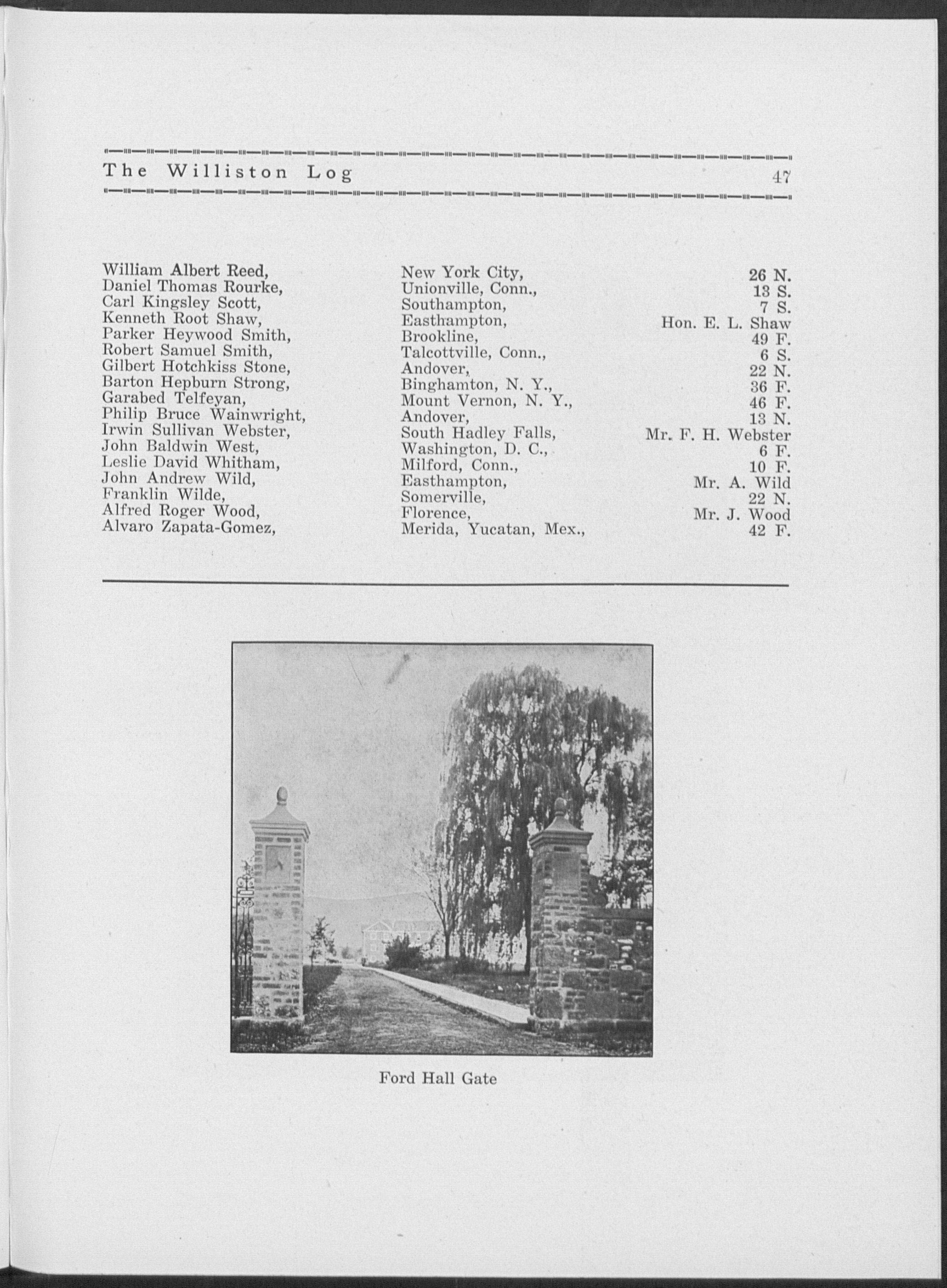 He is also a member of the Association of Teachers of Mathematics in New England and was its President in 1911-12. Recently he has been elected a member of the Headmasters' Association, and he is Secretary of the Board of Trustees of Williston Seminary.