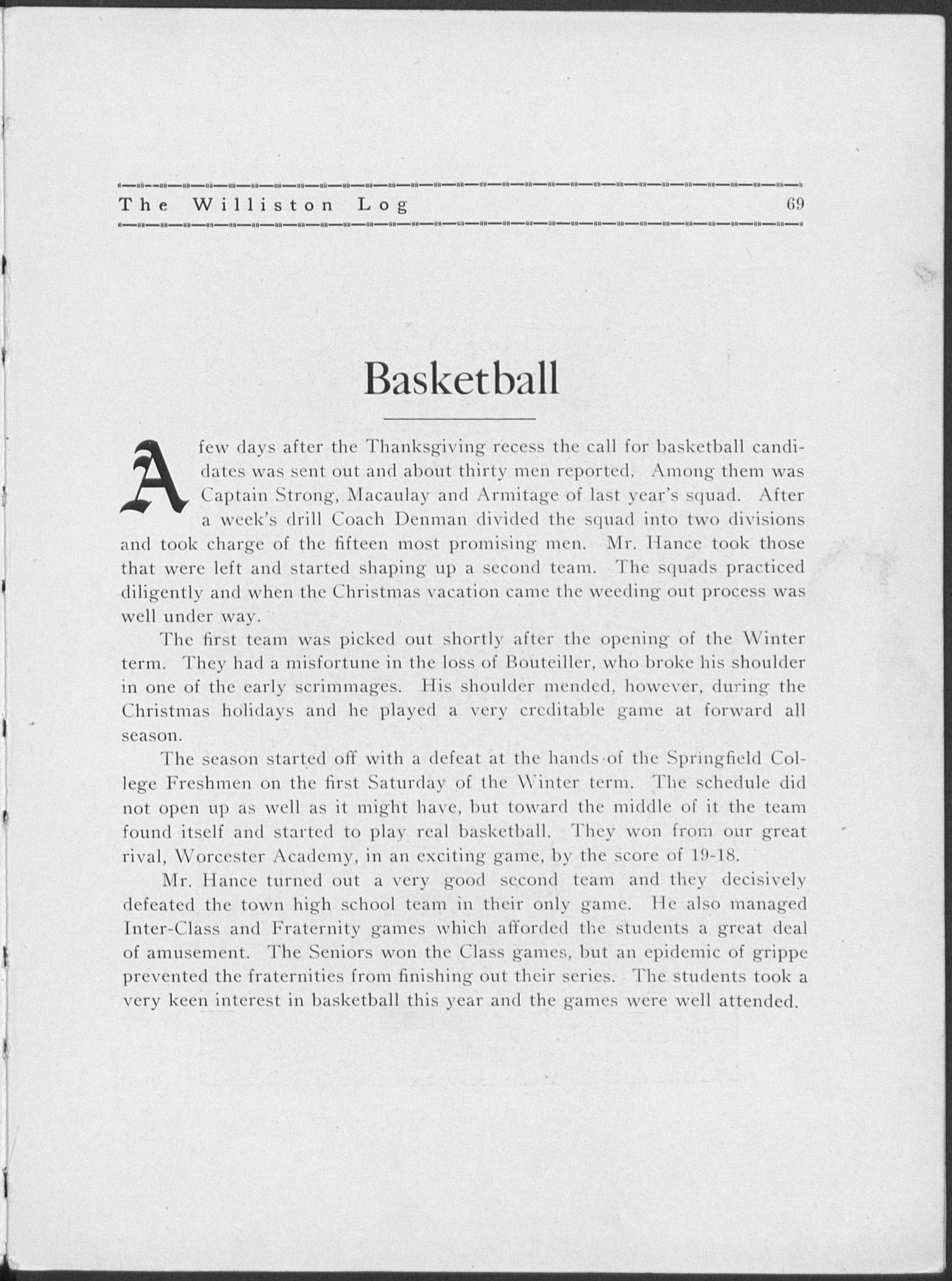 Williston is a democratic school for earnest, clean minded youth who aspire to leadership