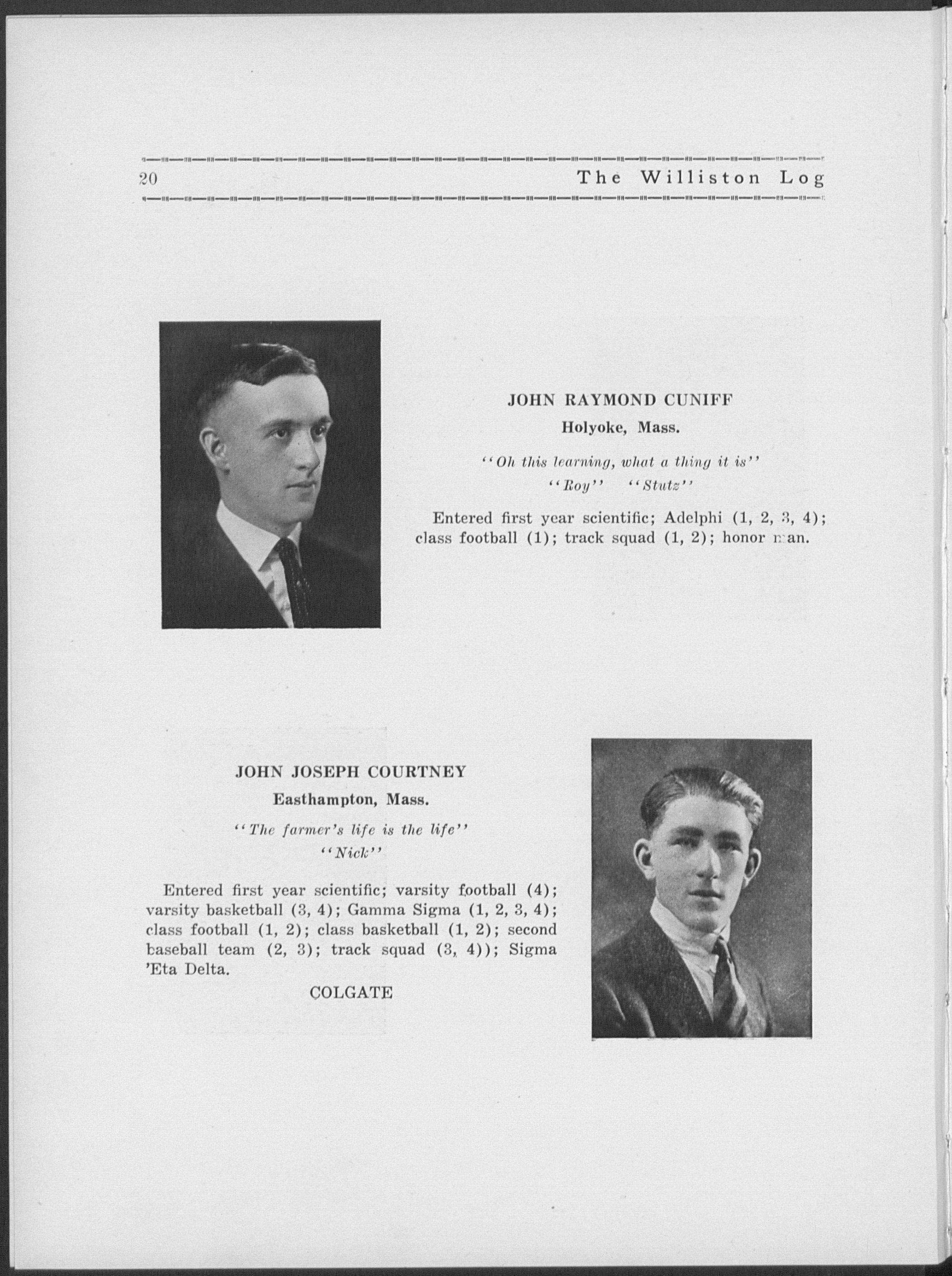 Entered second year scientific; Adelphi (3); Willistonian Board (3); Prom committee (4); football squad (3); L.L. D.
