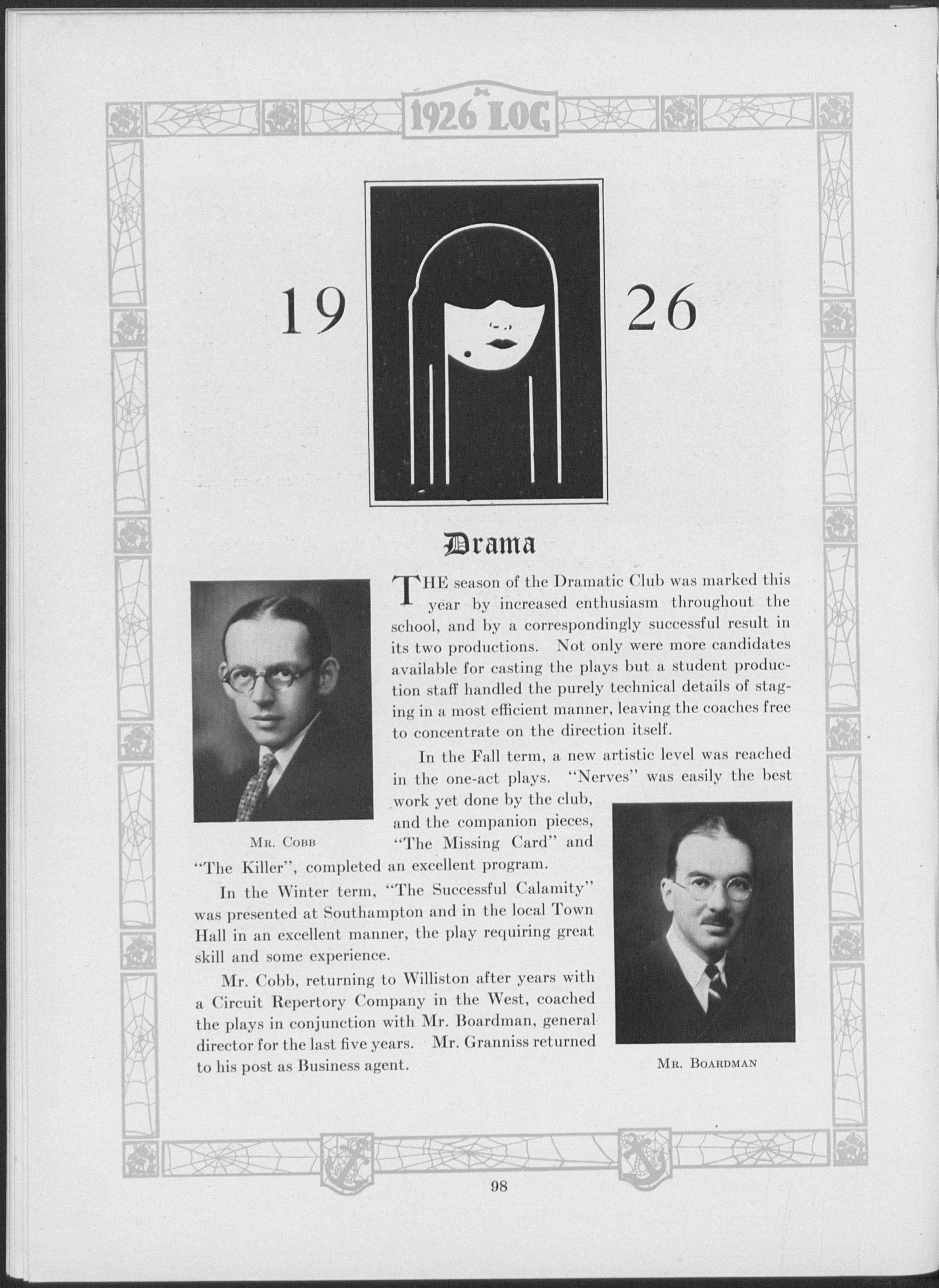 PR ship embarks; we sail onward to uncharted seas, where the buffeting of winds and waves will bear us down or carry us more swiftly to safe harbor in the world of Thought. Our stay in port has been filled to overflowing with bounteous gifts bestowed upon us by our esteemed captain and crew. Whether our outward voyage will terminate successfully, depends on our ability to steer straight ahead with our own North Star behind us. To perpetuate in our hearts the many pleasant associations and friendships formed during our anchorage under the shadow of old Mount Tom, this 1926 Log is published; that, as the years roll on, bringing before us new seas and foreign ports, we may turn again to dear old Williston and recall the days that used to be.
