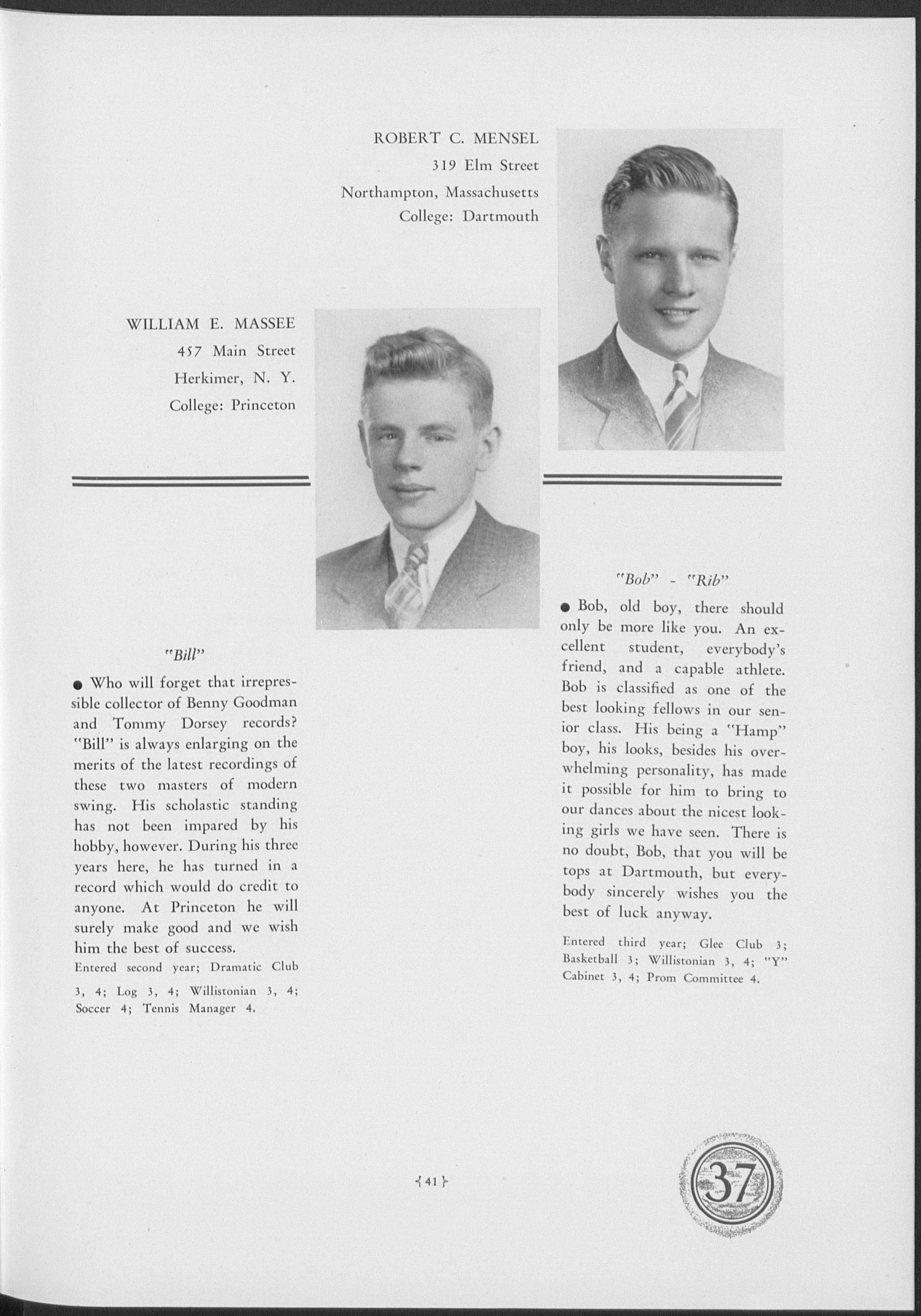 Graduated Pittsfield Mass. High School 1920; Graduated Harvard College 1925; Alpha Sigma Phi Fraternity; Taught at Wilbraham Academy 1929-31; Director of Admissions at Wilbraham 1931-36; Elected to Williston 1936.
