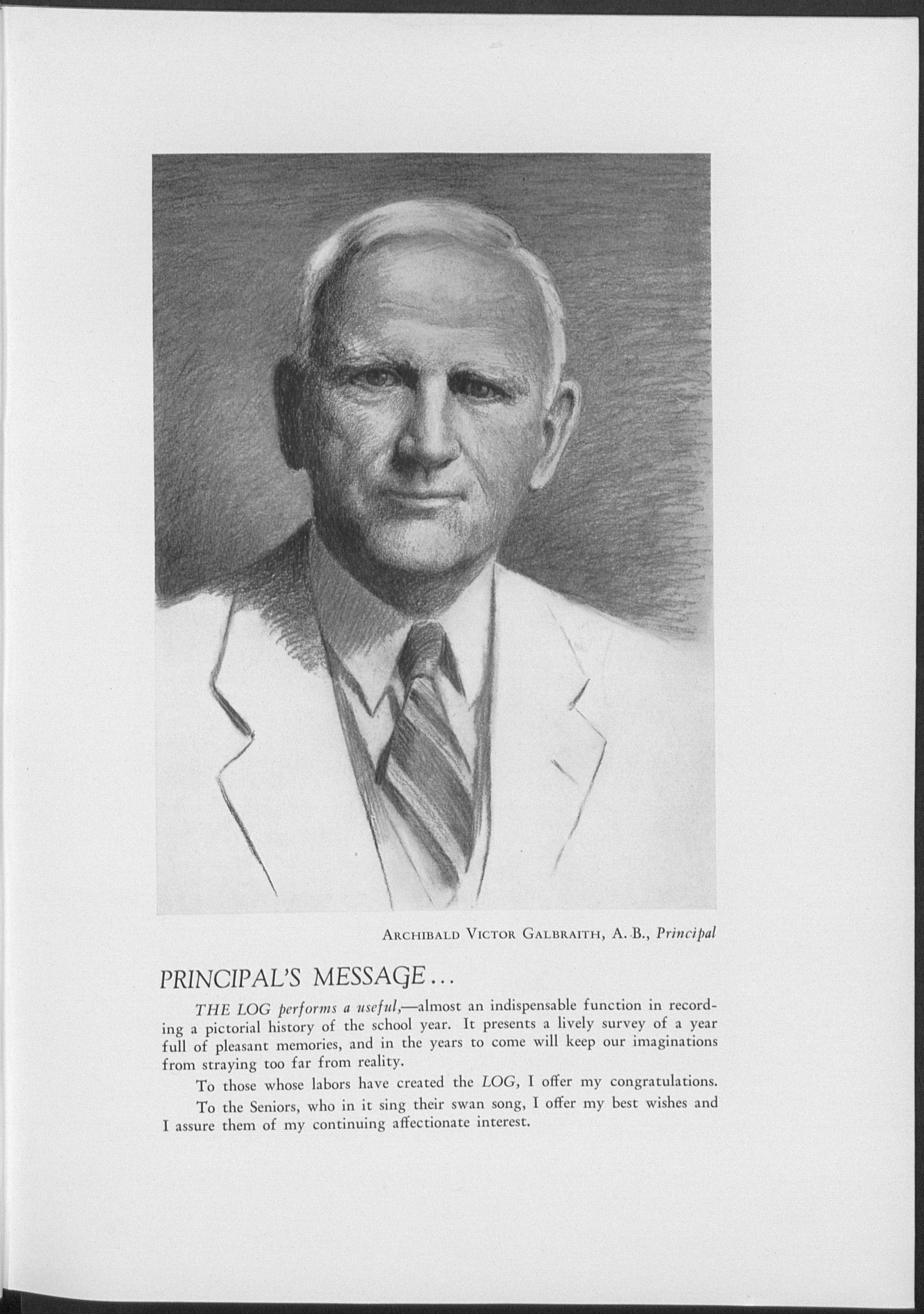 THE LOG performs a useful,—almost an indispensable function in recording a pictorial history of the school year. It presents a lively survey of a year full of pleasant memories, and in the years to come will keep our imaginations from straying too far from reality.