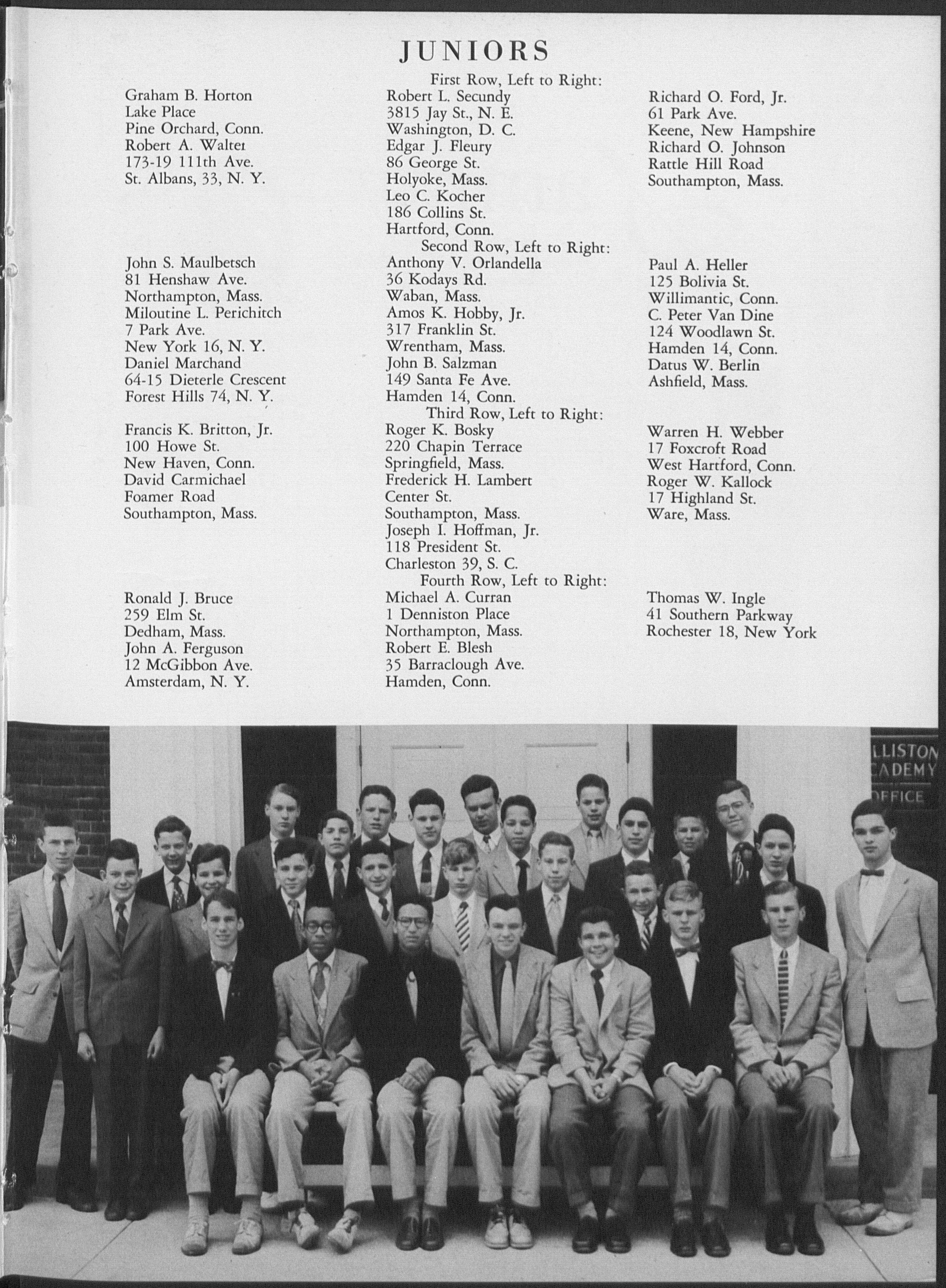 New York, N. Y. Easthampton, Mass. Easthampton, Mass. Springfield, Mass Farmington, Conn.
