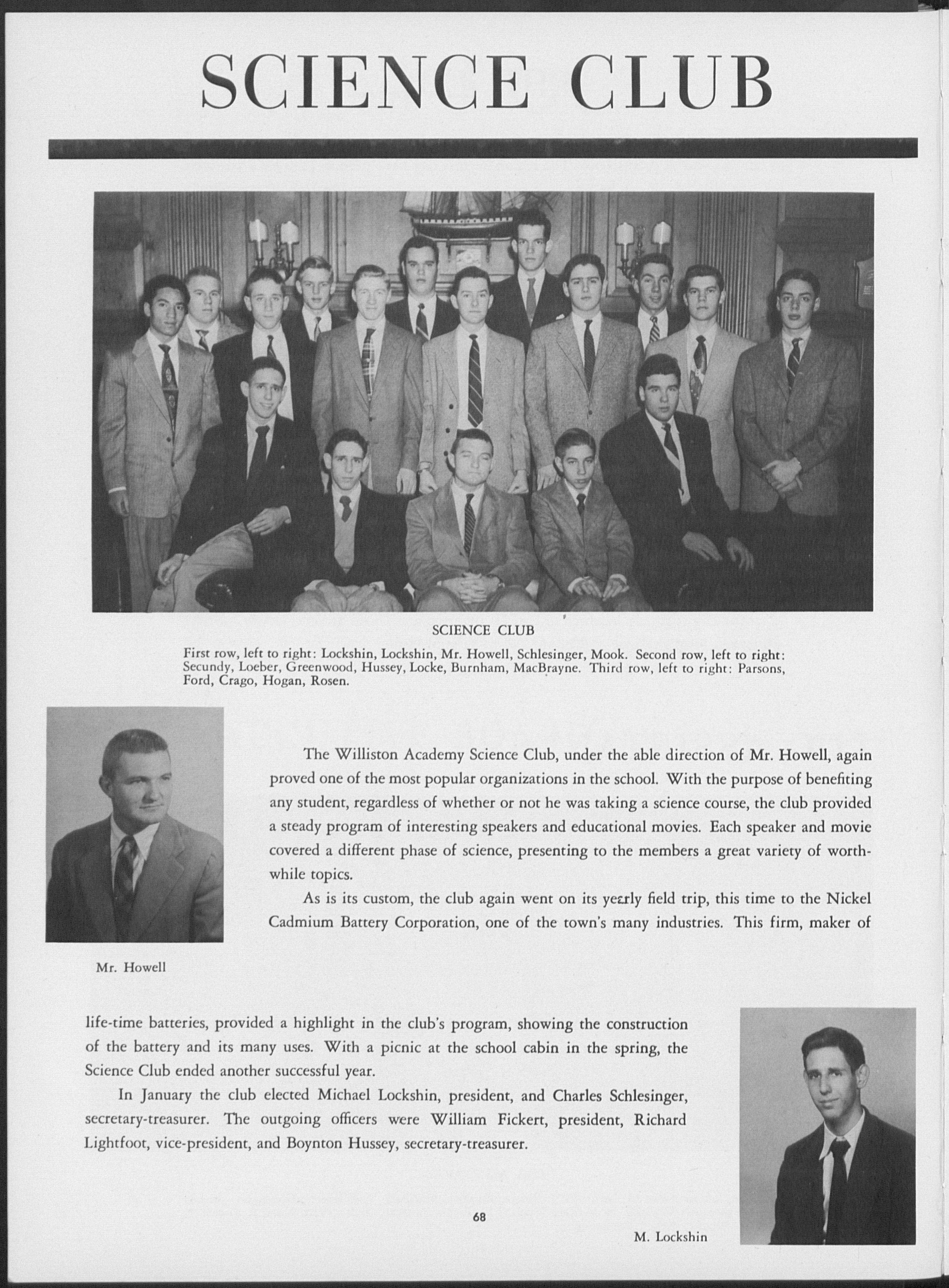 Graduated Pittsfield High School, 1920; graduated Harvard University, A.B., 1925; Alpha Sigma Fraternity; taught at Wilbraham Academy, 1929-1931; Director of Admissions at Wilbraham Academy,1931-1936; elected to Williston, 1936.