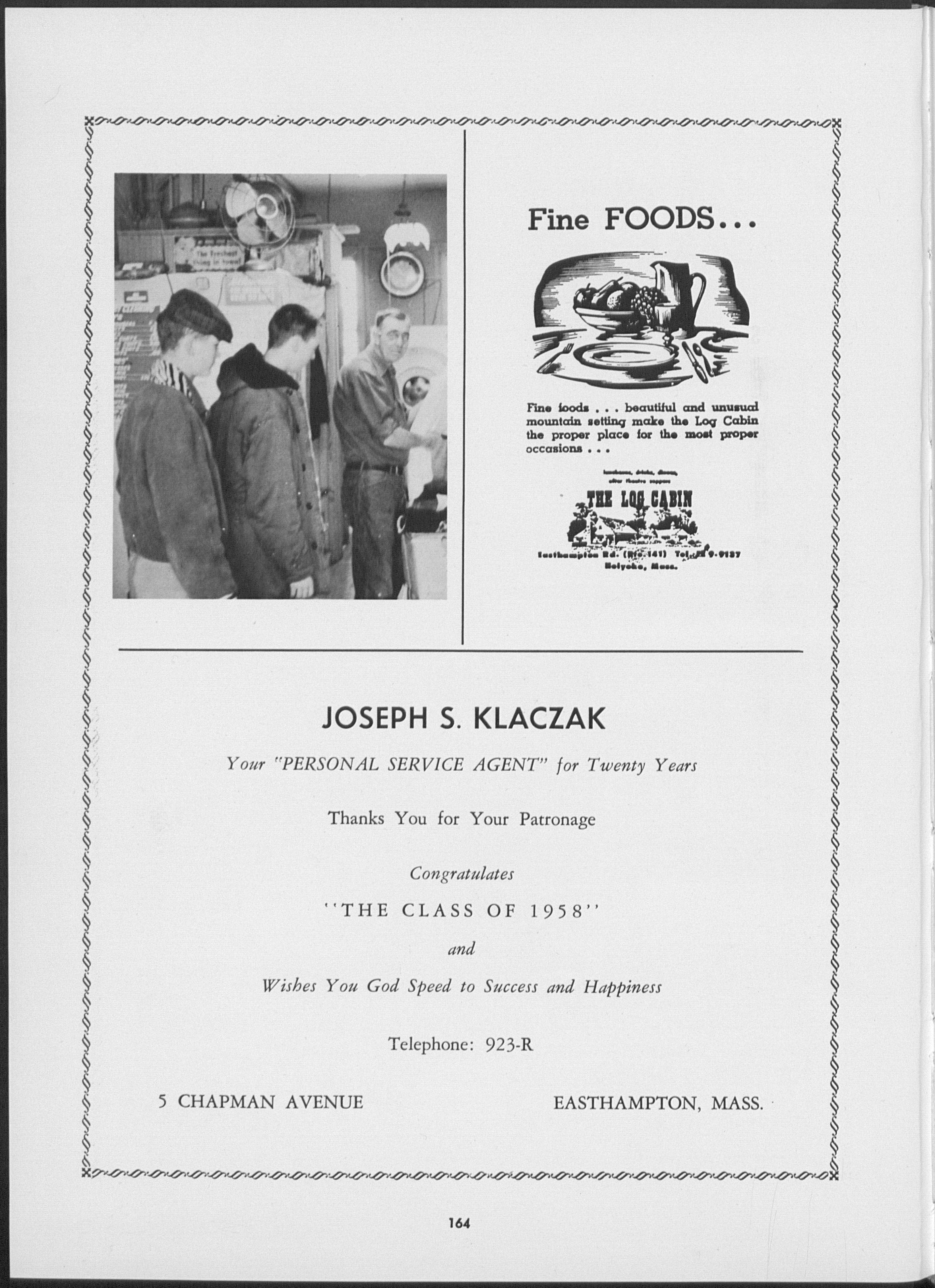 It is with highest regard that we, the senior class and student body of Williston Academy,dedicate this, the 1958 Log,to Mr. William M.Lauman.