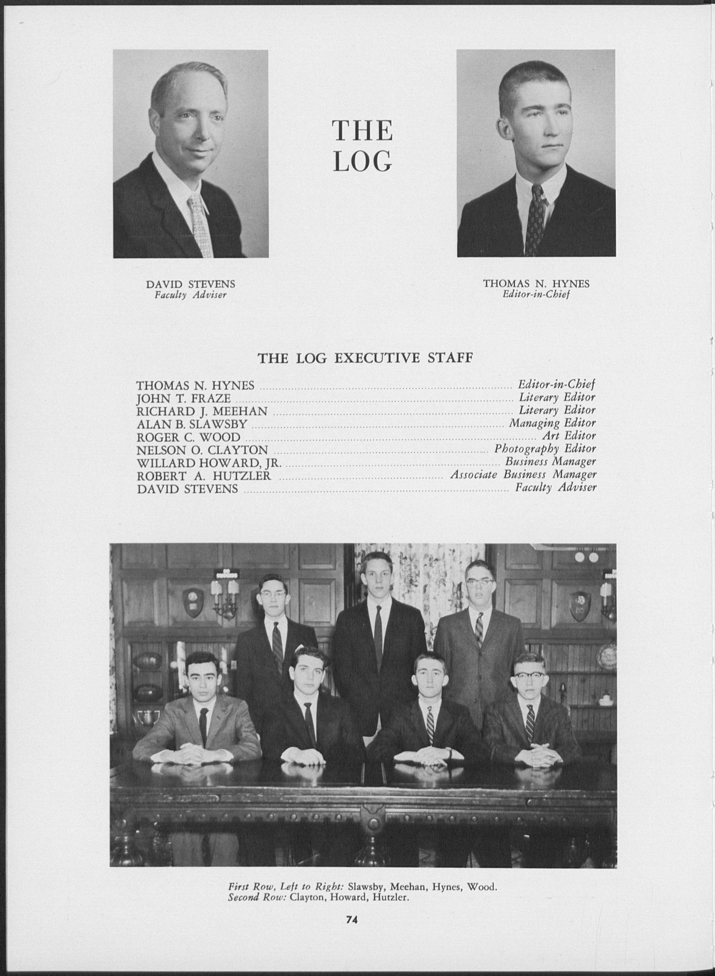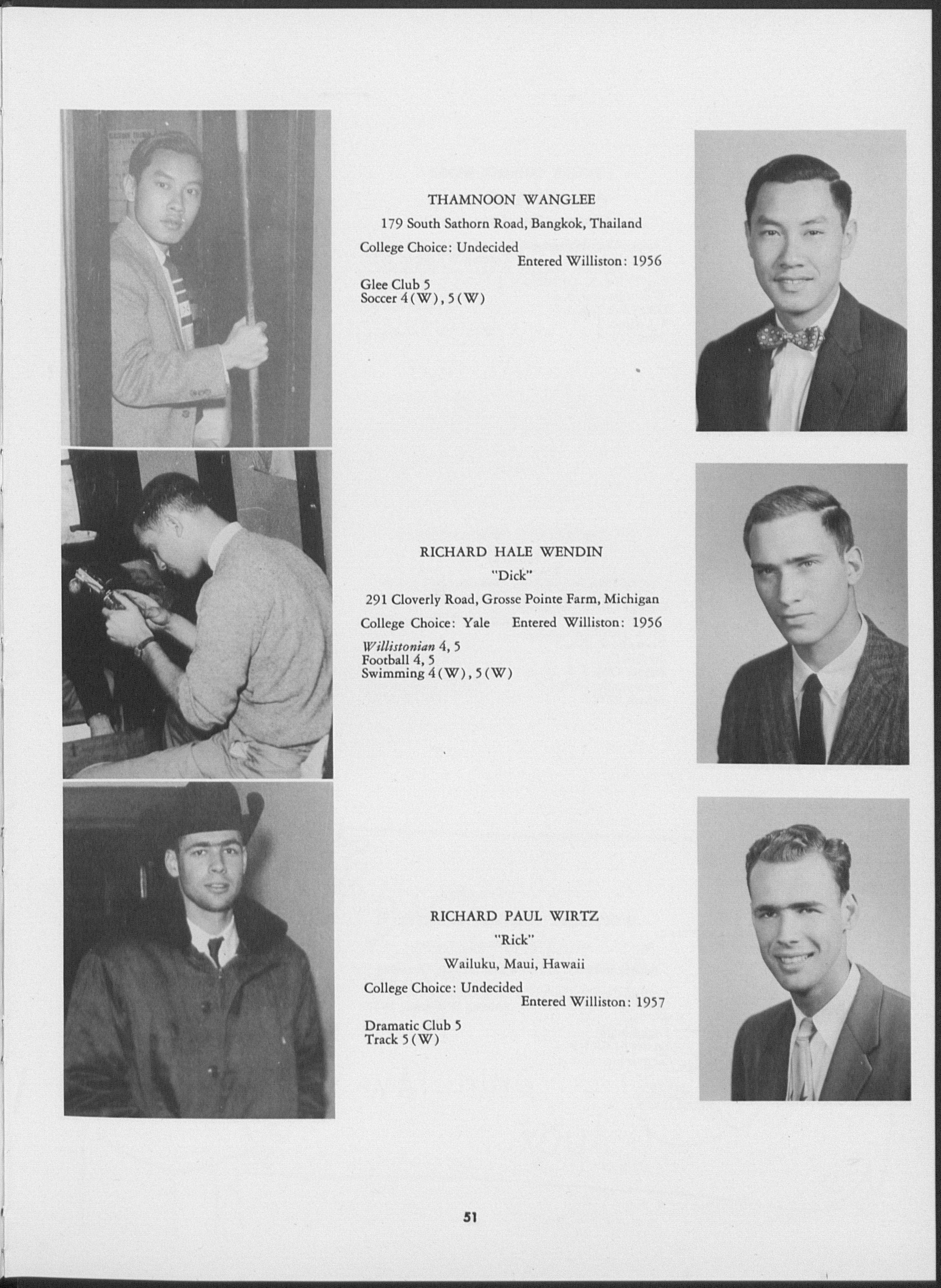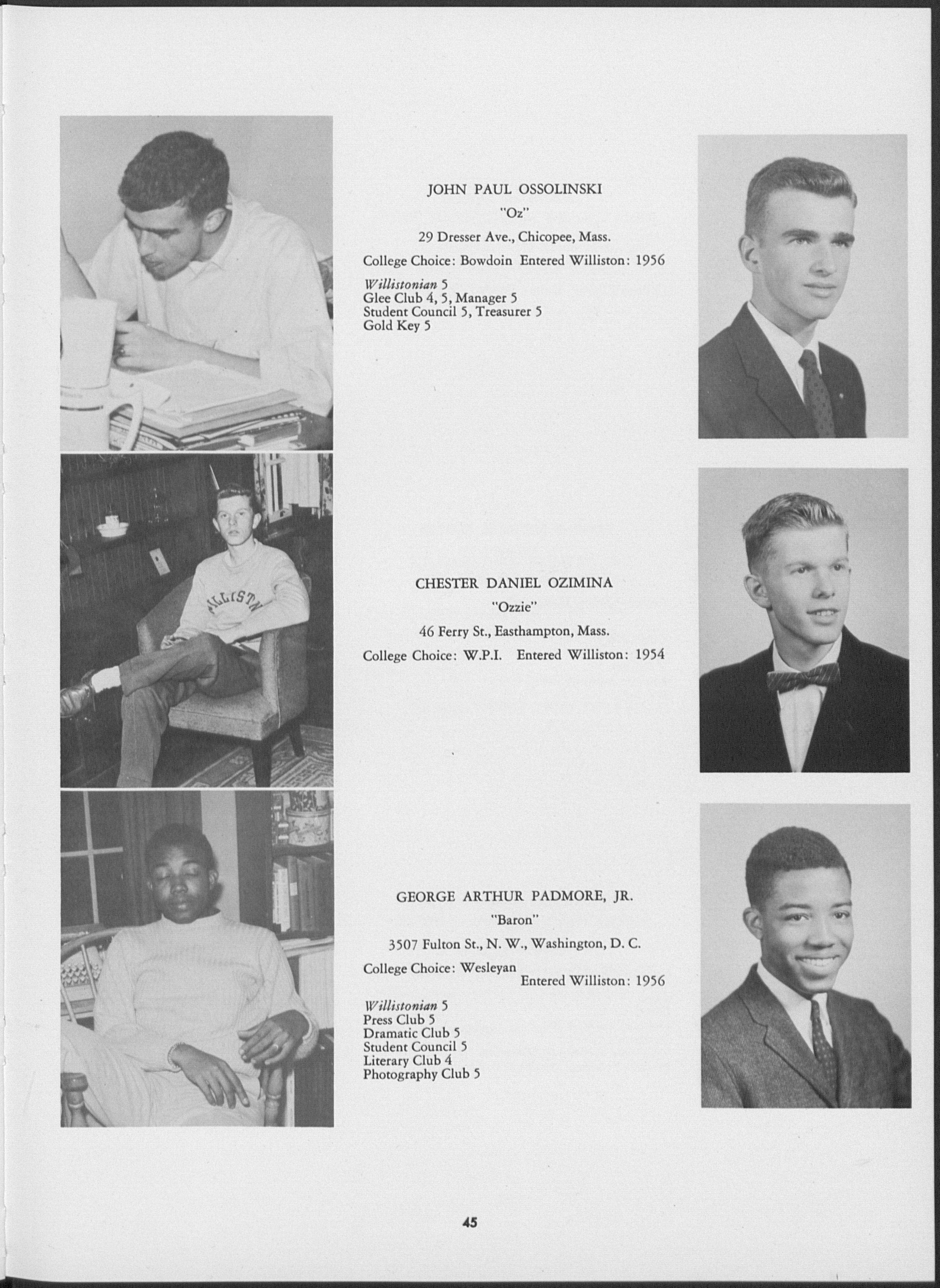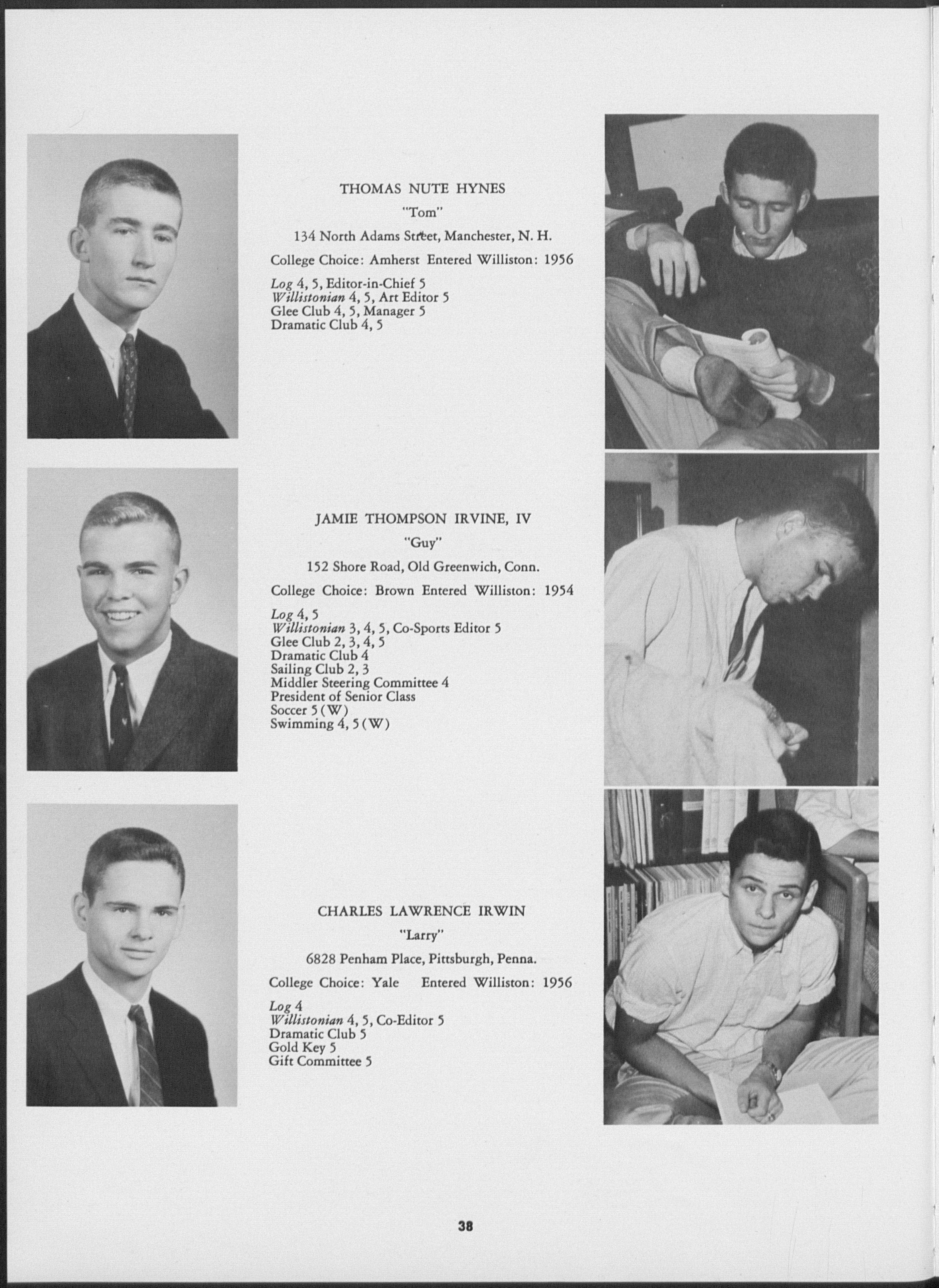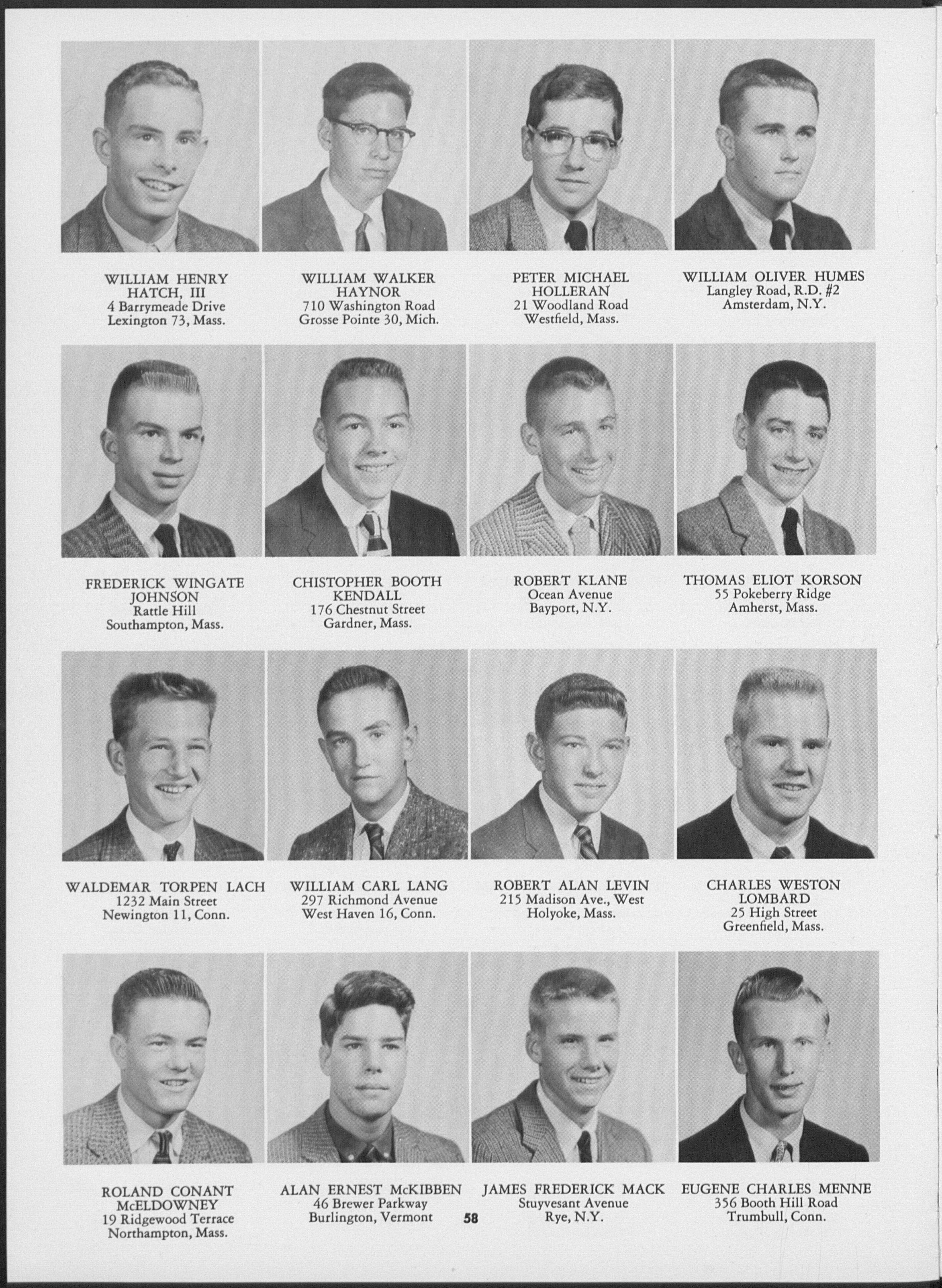A graduate of Dartmouth College in nineteen-hundred and twenty-five, he entered Williston in nineteen-hundred and fifty-two. A devoted instructor of English and a Senior Master, his unceasing generosity to seniors and underclassmen alike has placed him in highest esteem. It is primarily, however, because of his tireless concern for the individual that this volume is inscribed to him.