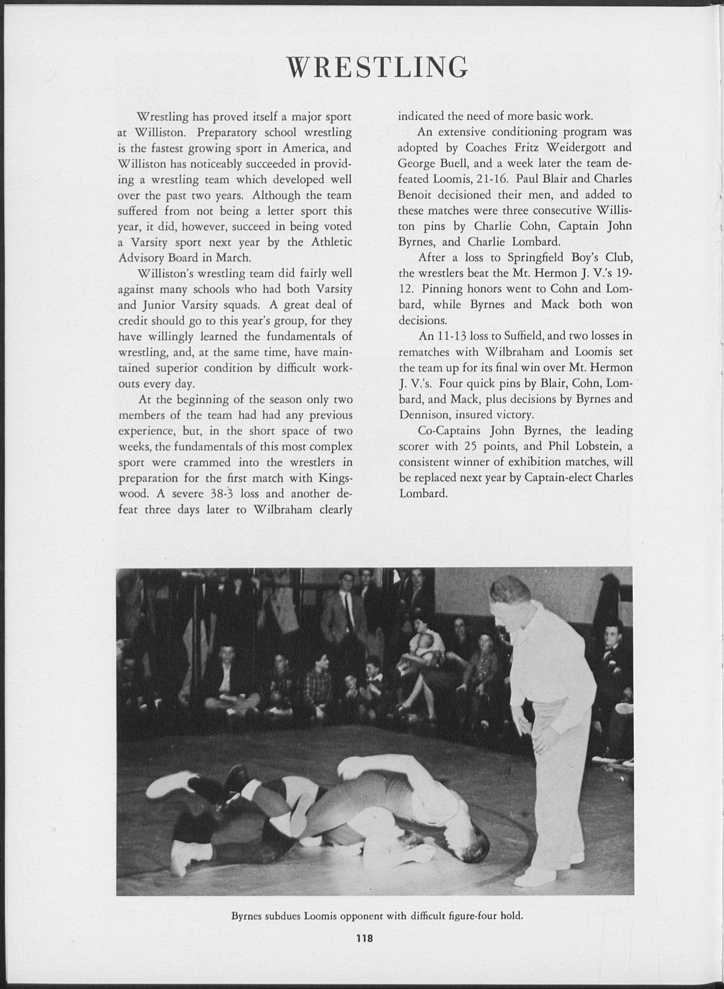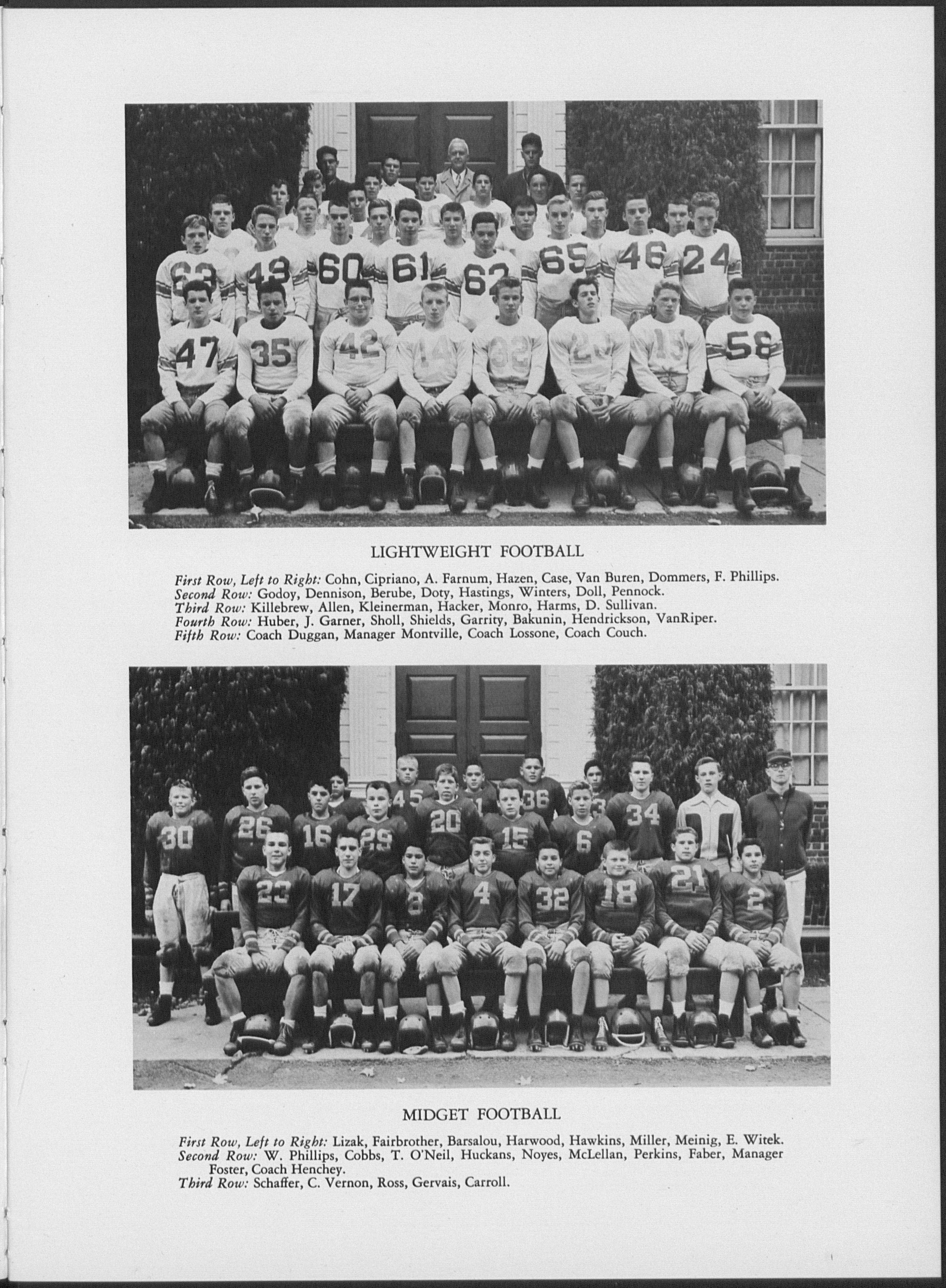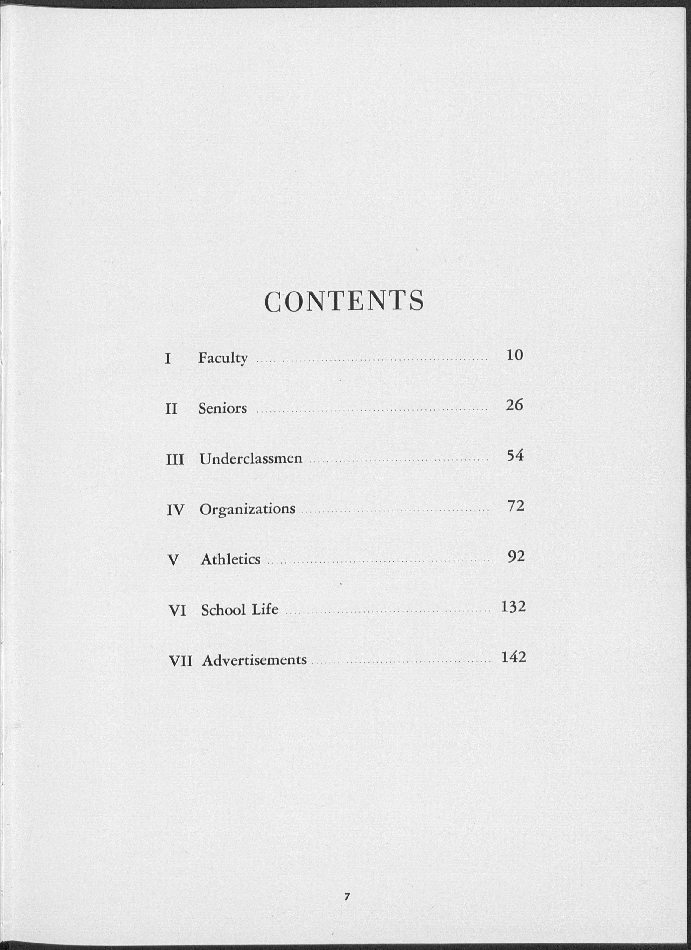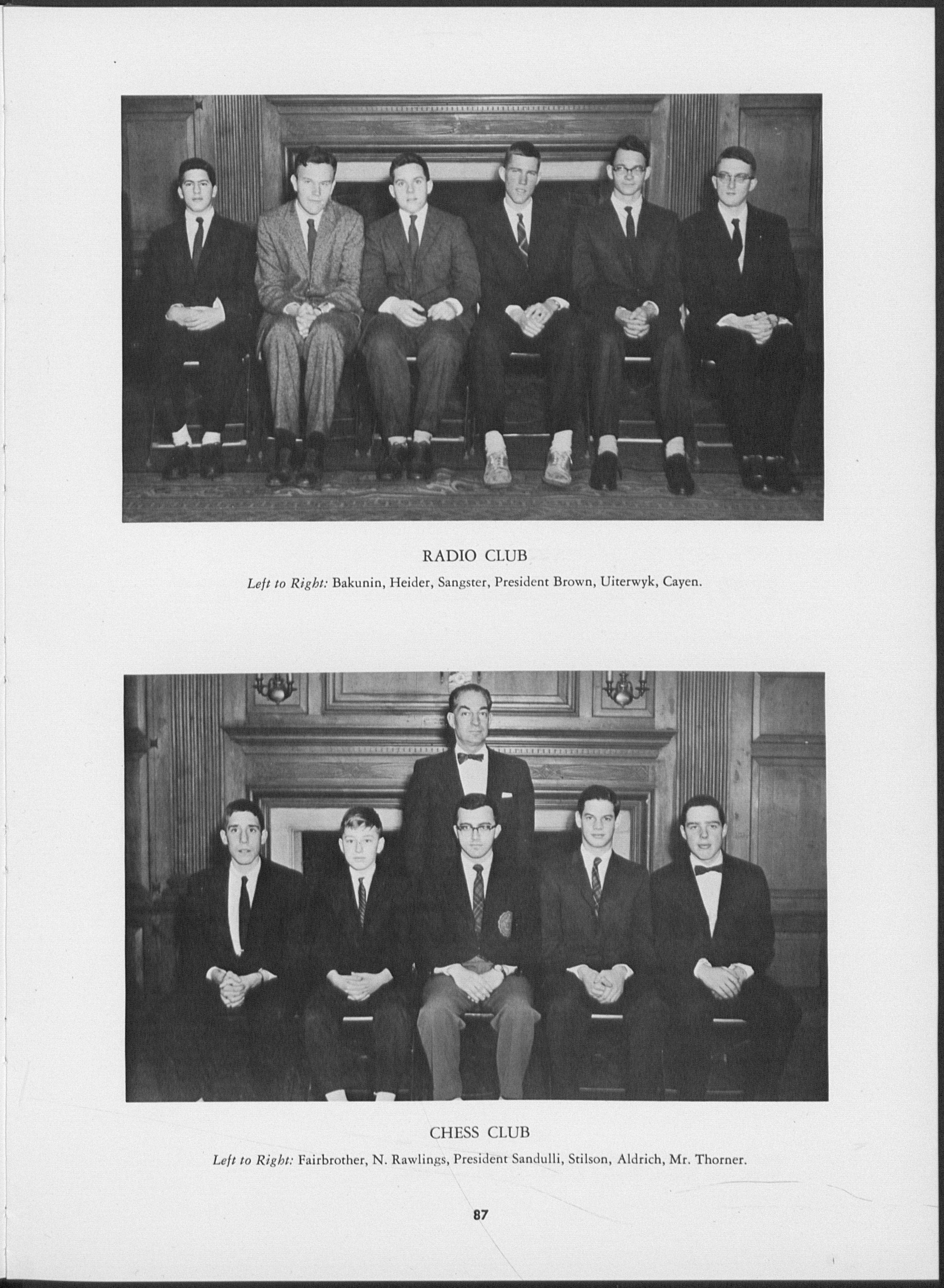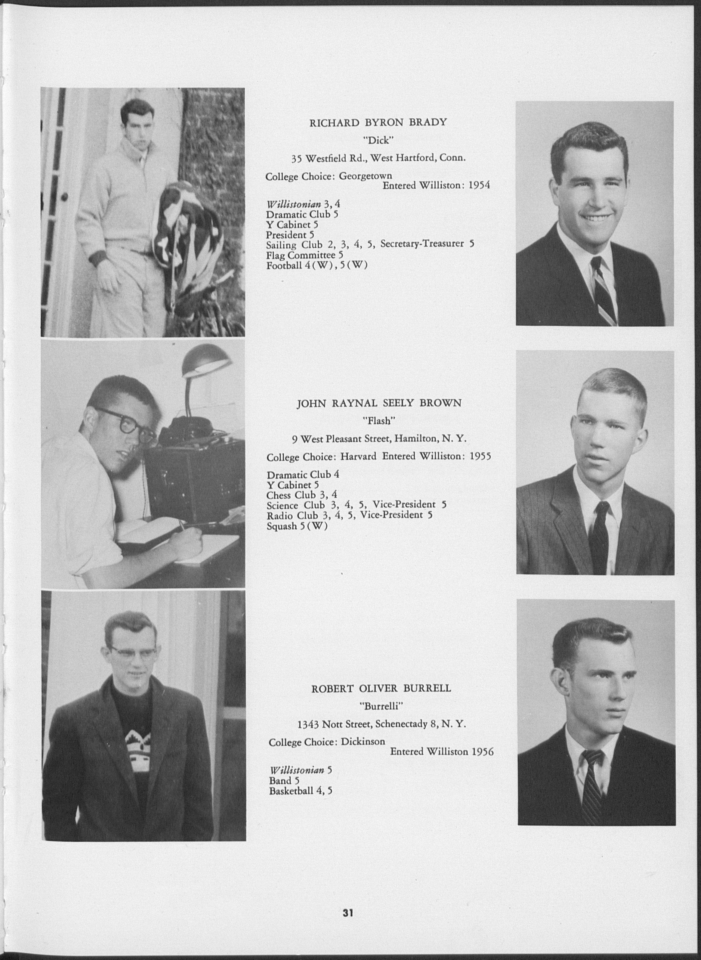 A graduate of Dartmouth College in nineteen-hundred and twenty-five, he entered Williston in nineteen-hundred and fifty-two. A devoted instructor of English and a Senior Master, his unceasing generosity to seniors and underclassmen alike has placed him in highest esteem. It is primarily, however, because of his tireless concern for the individual that this volume is inscribed to him.