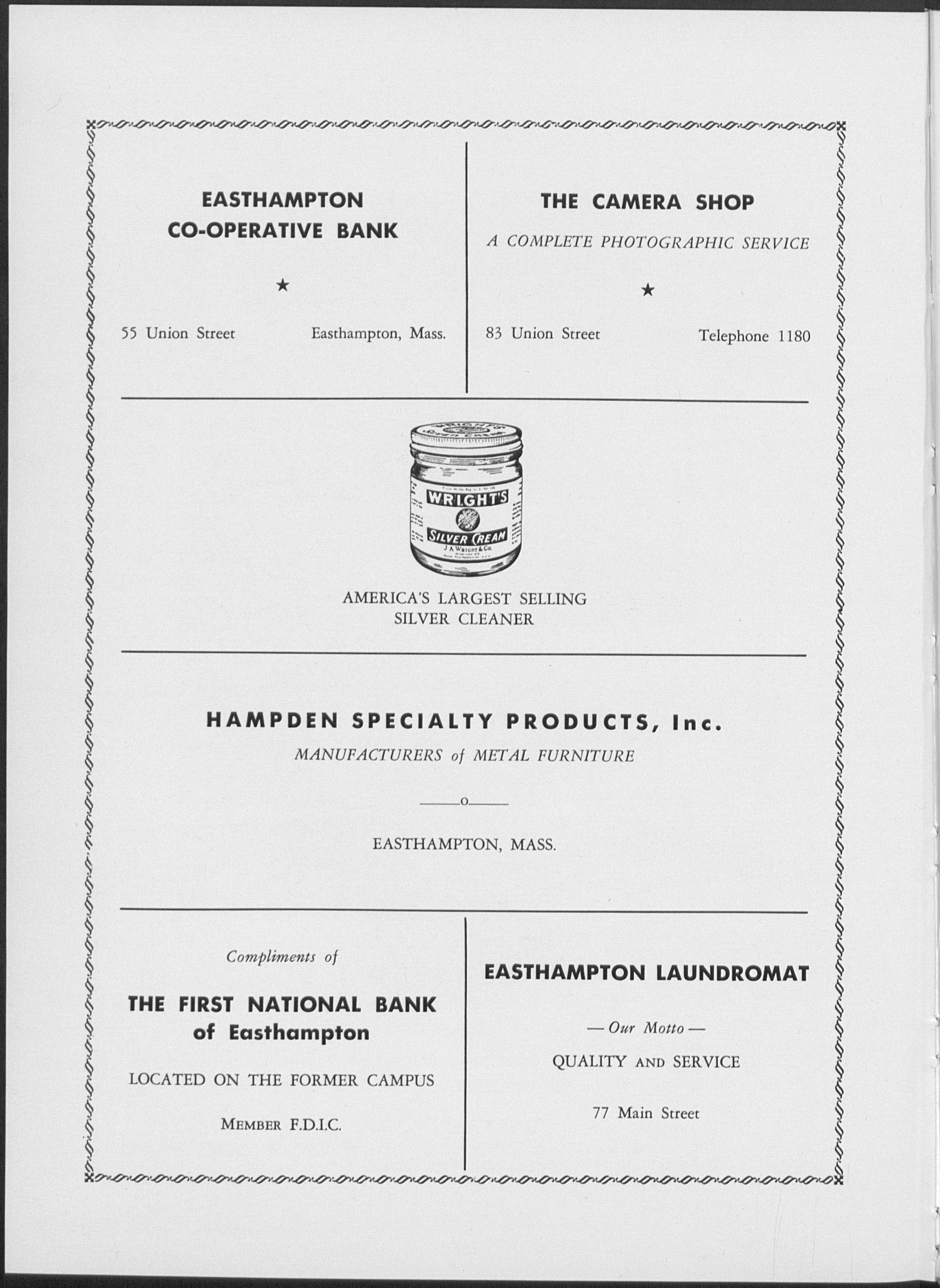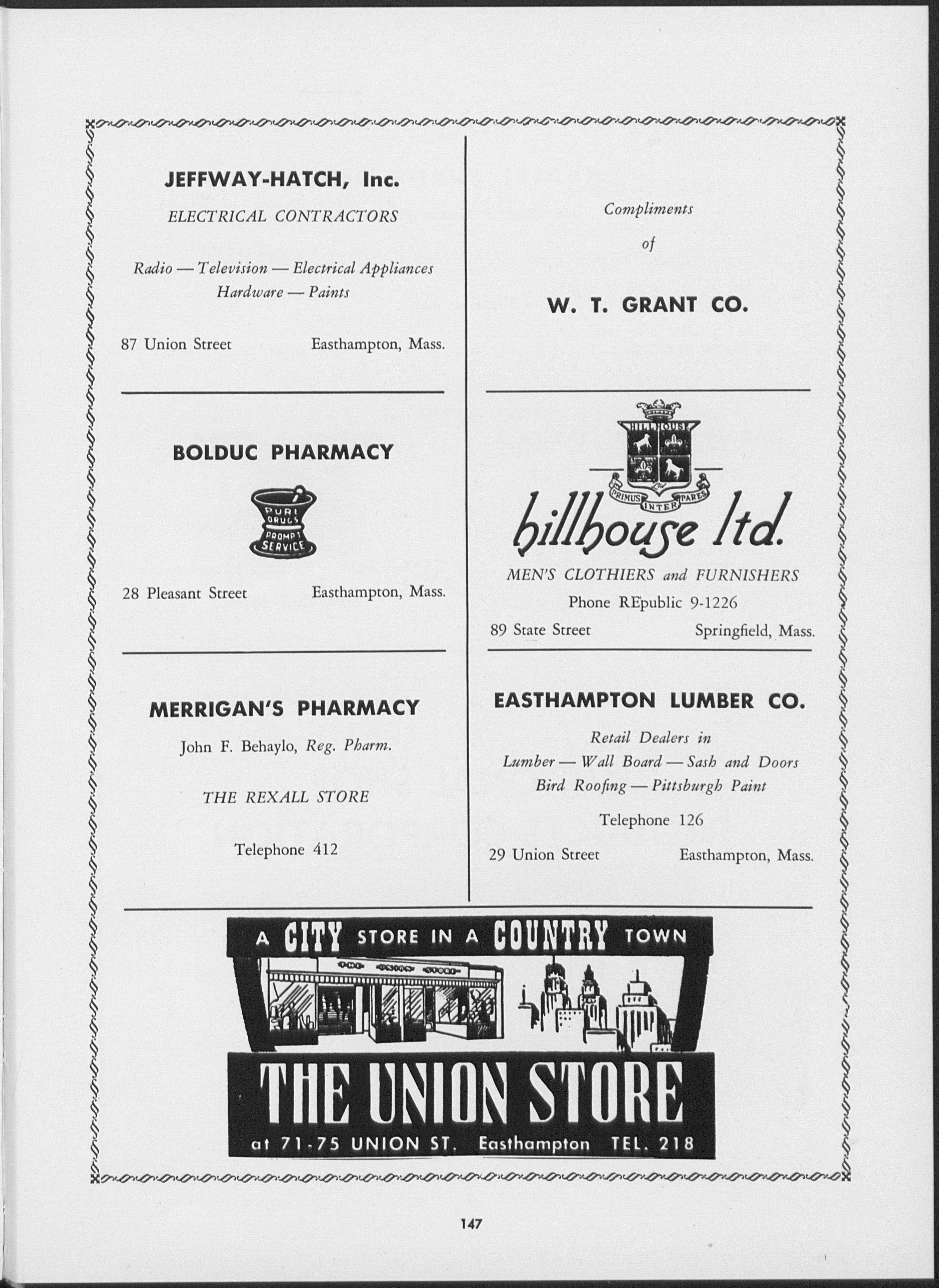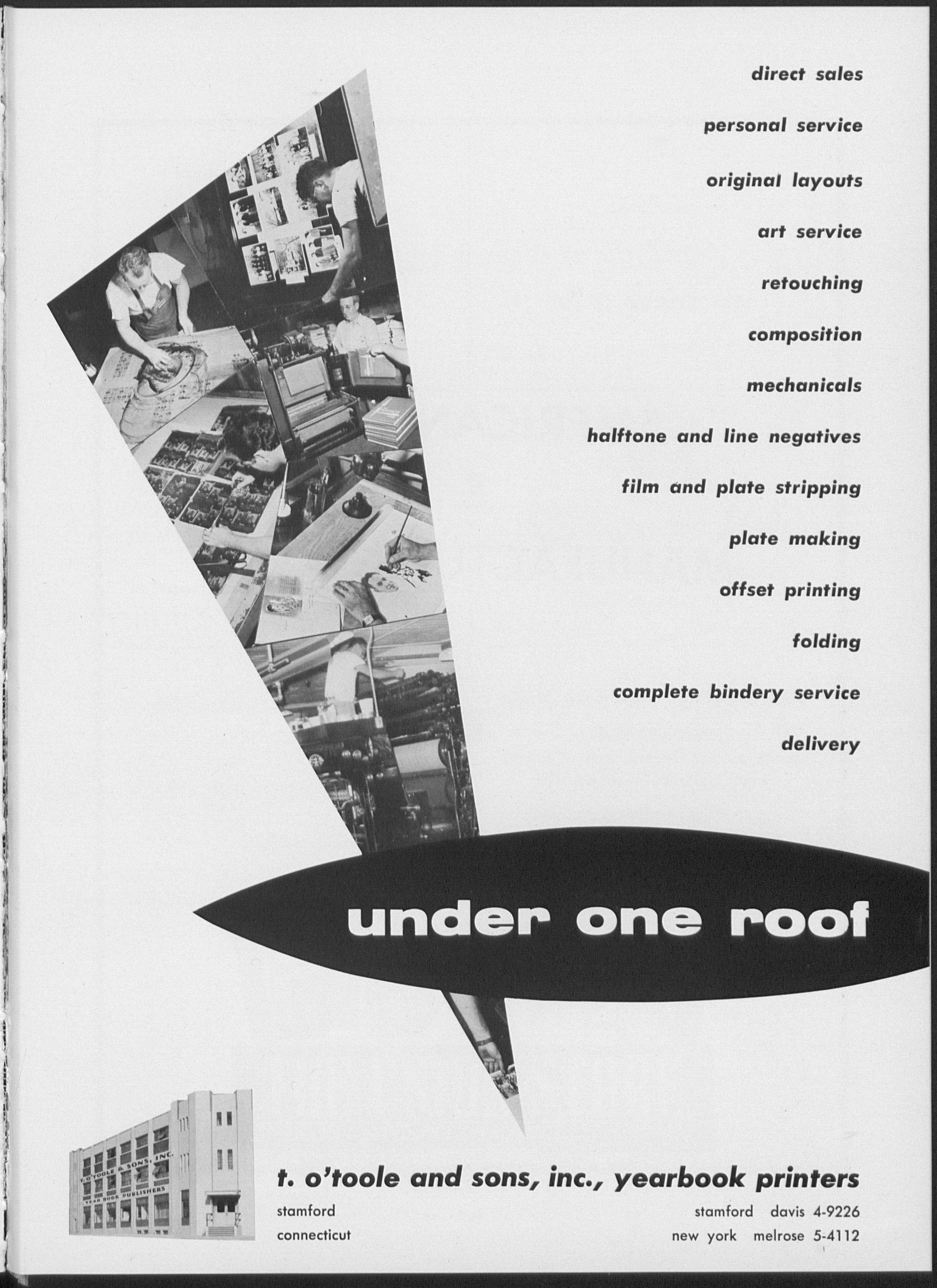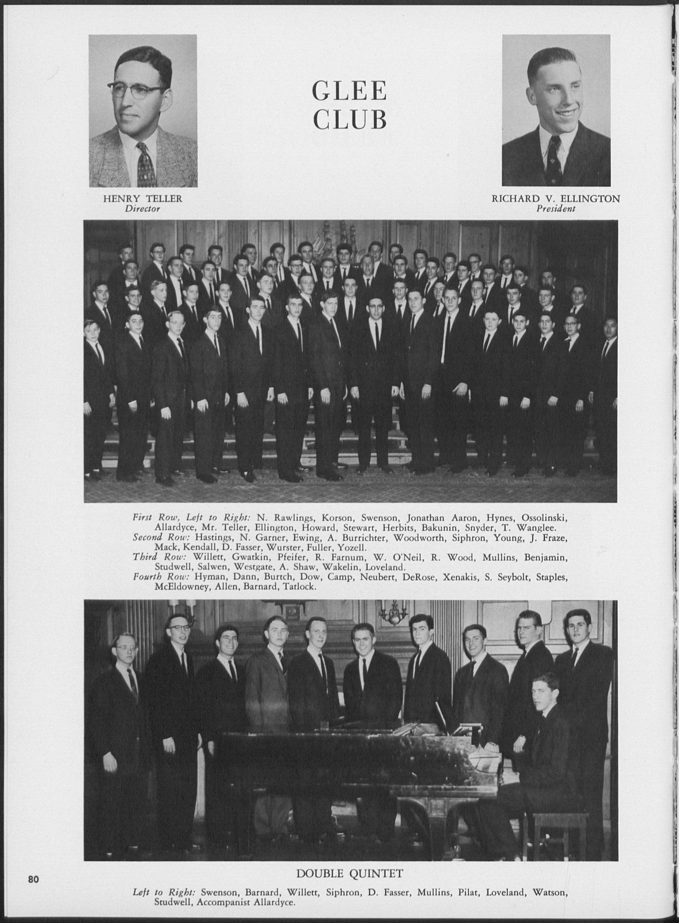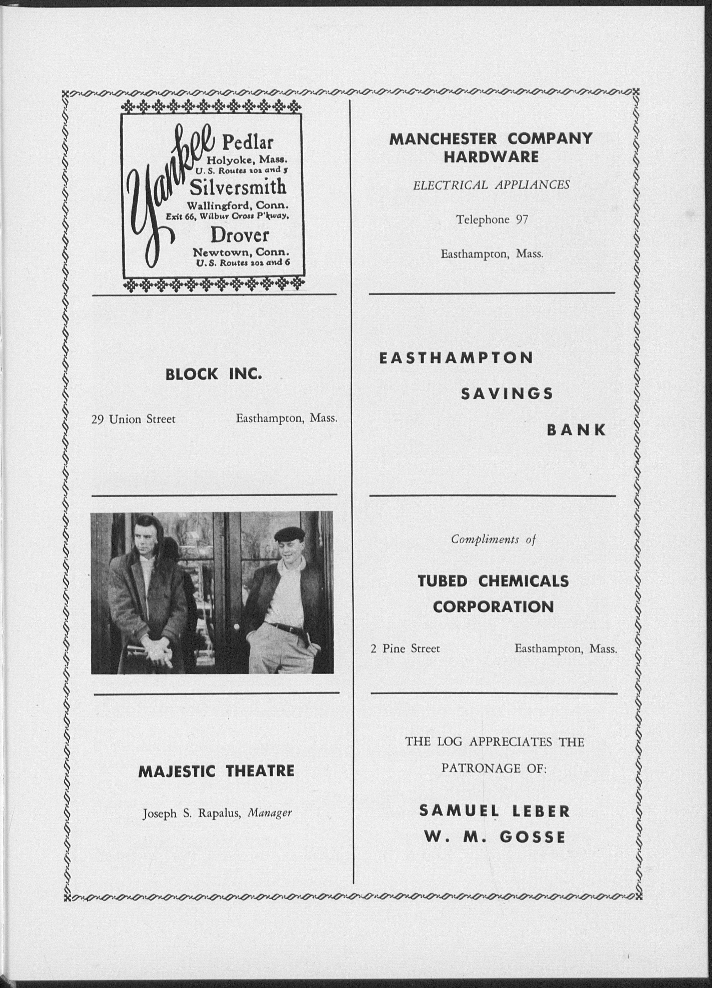 A graduate of Dartmouth College in nineteen-hundred and twenty-five, he entered Williston in nineteen-hundred and fifty-two. A devoted instructor of English and a Senior Master, his unceasing generosity to seniors and underclassmen alike has placed him in highest esteem. It is primarily, however, because of his tireless concern for the individual that this volume is inscribed to him.