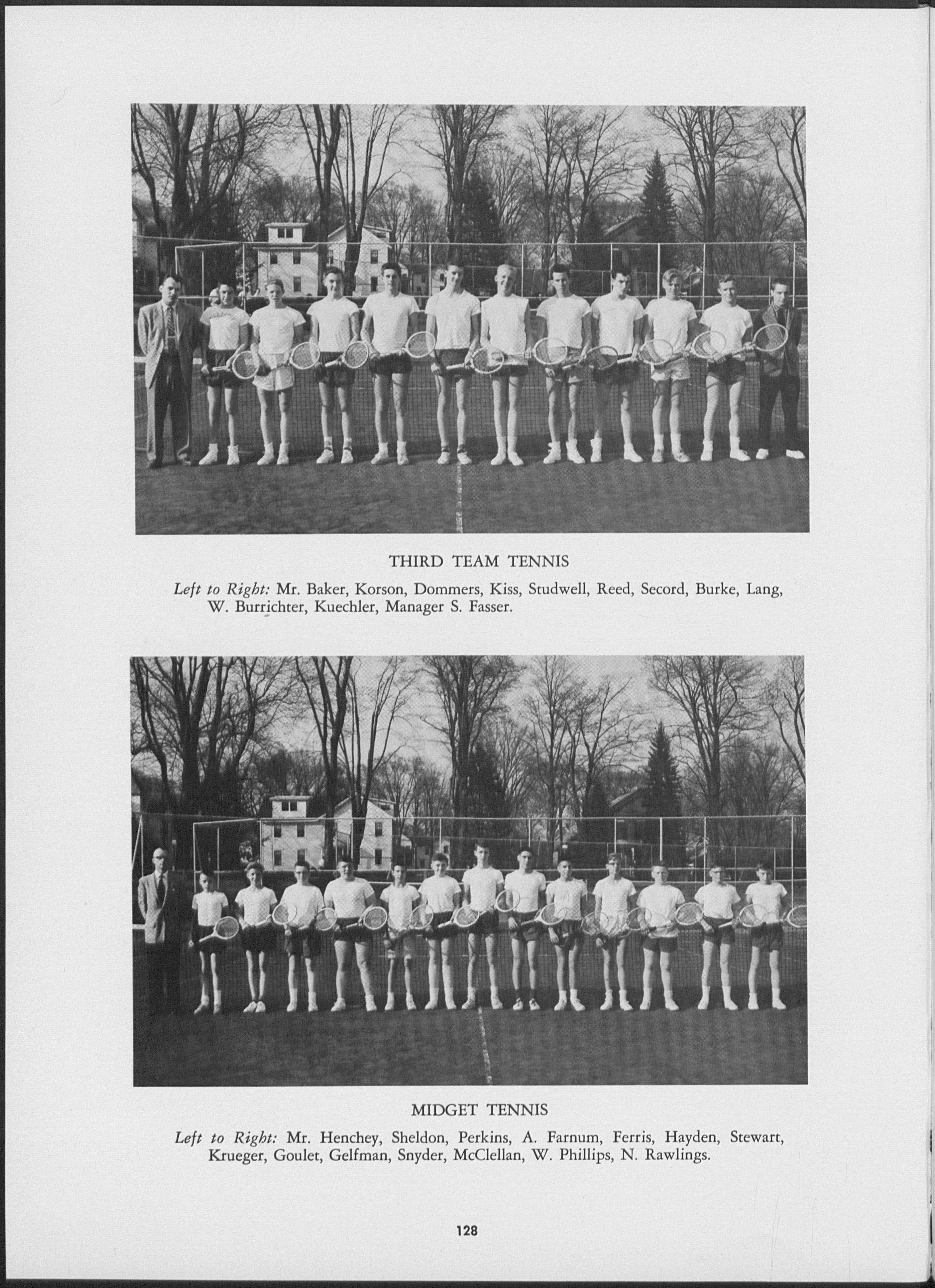 With more boys out for tennis and better facilities than ever before, Coach Hepworth and Captain Dick Ellington were extremely optimistic about the season. In addition to the three new courts at the Pitcher Estate, a bang wall was constructed so players could warm up before their matches.