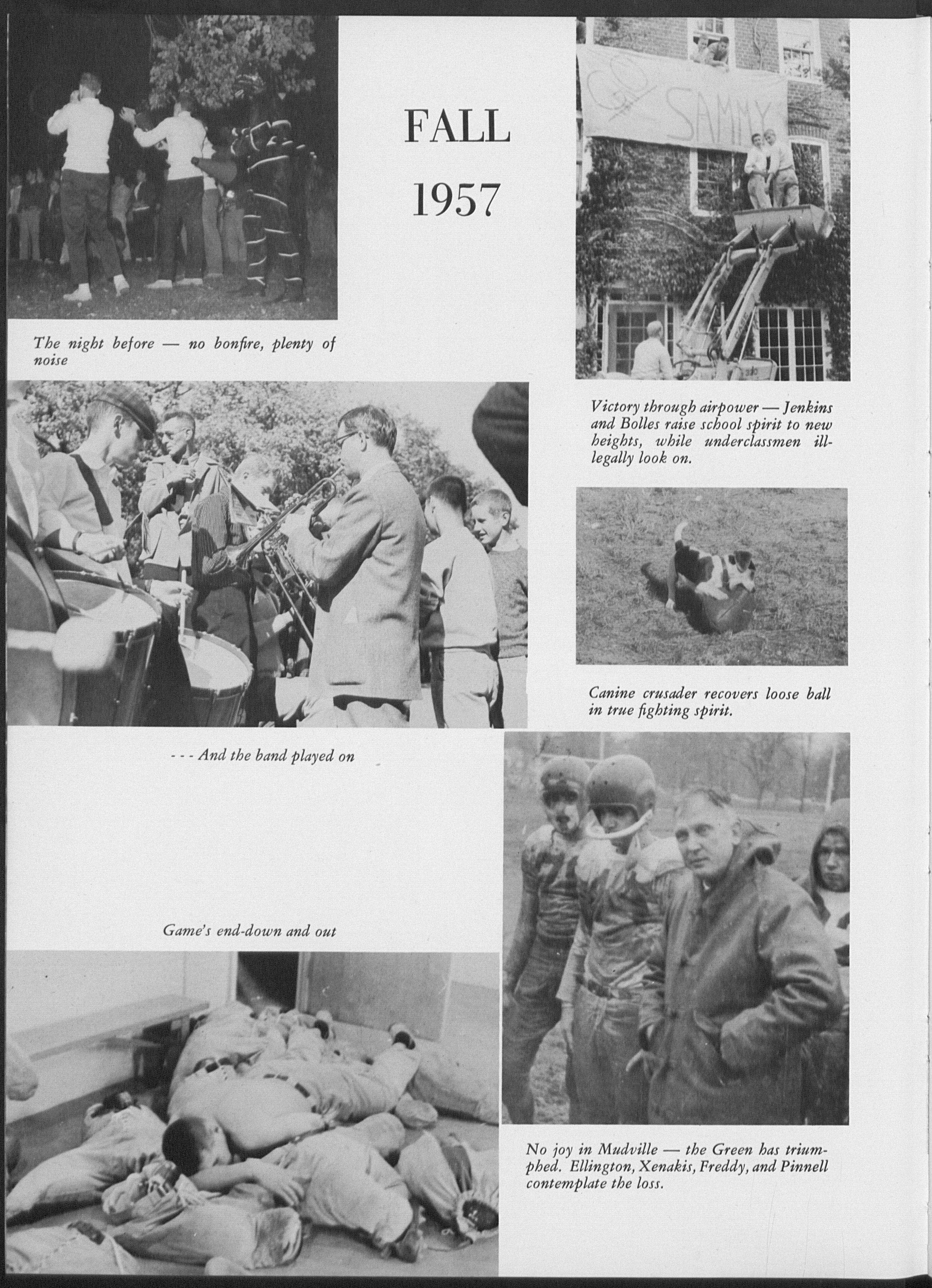 Victory through airpower — Jenkins and Bolles raise school spirit to new heights, while underclassmen illlegally look on.