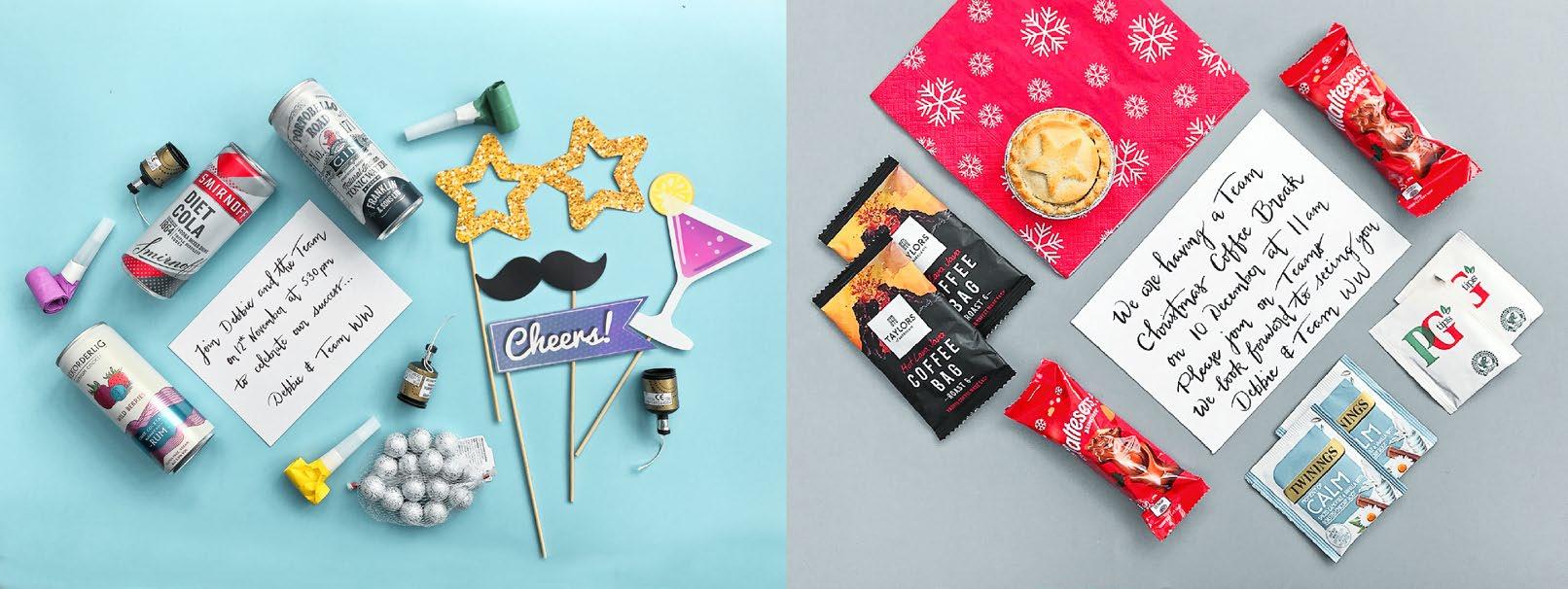 We are experts as creating gift boxes for staff and clients delivered to their door! Are you having an event, Sales kick off, office party, coffee morning, staff picnic, want to say thank you for hard work and support, or need a motivational snack box. Chat to us today and we will create your own custom box, with your message and Brand.